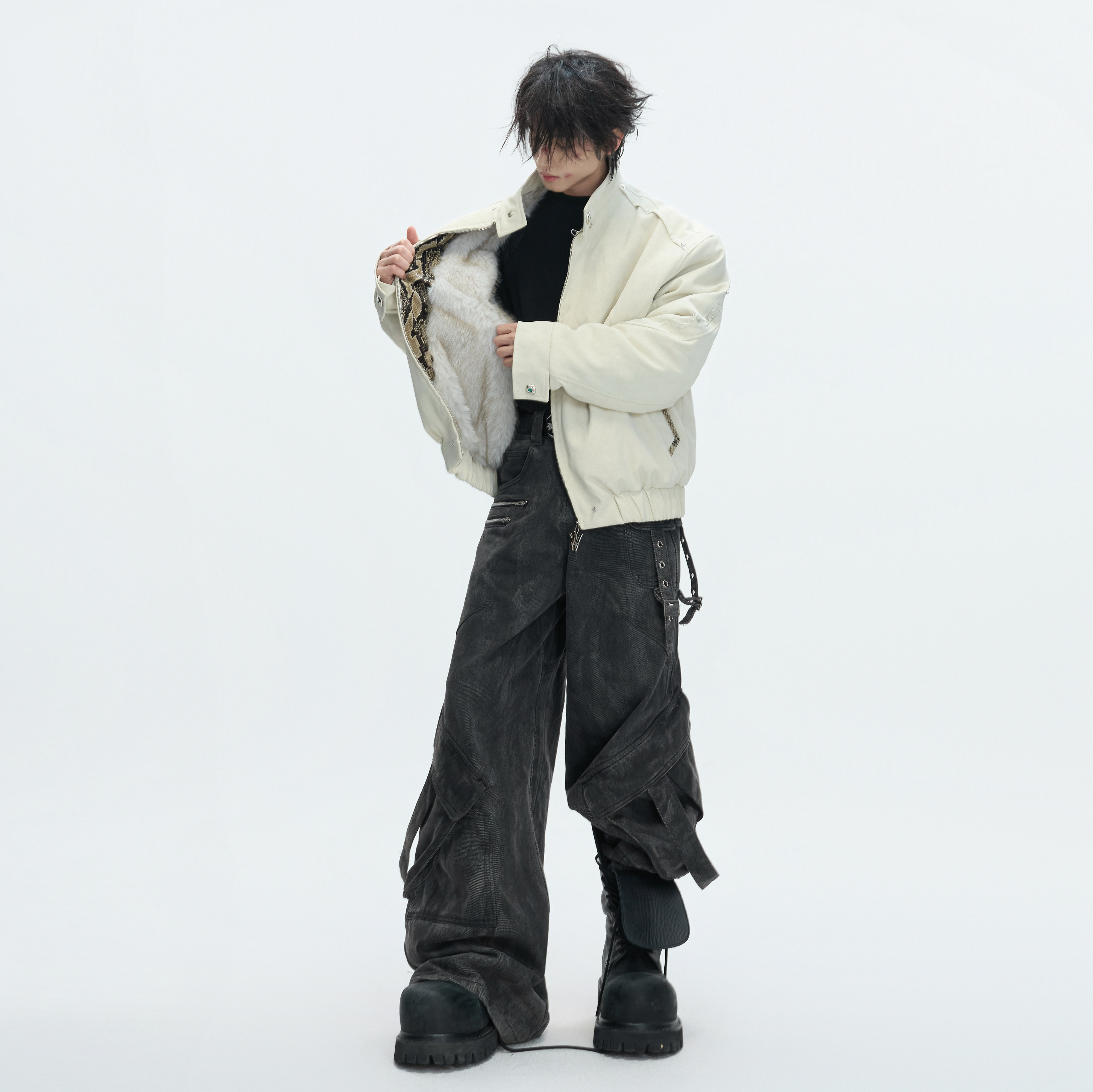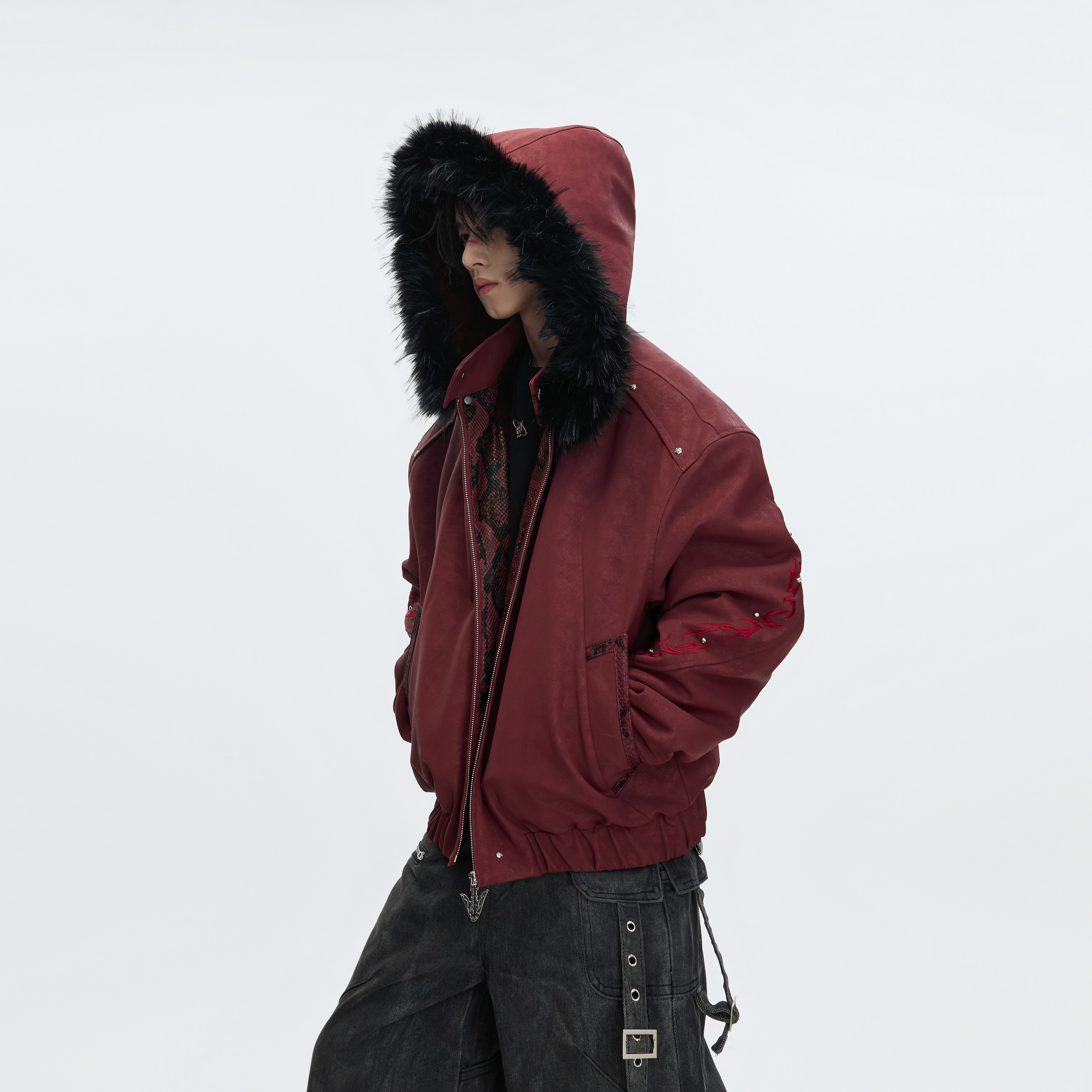 ArguECulturE赤焰 重磅刺绣洗水皮加厚保暖座山雕外套棉服夹克冬