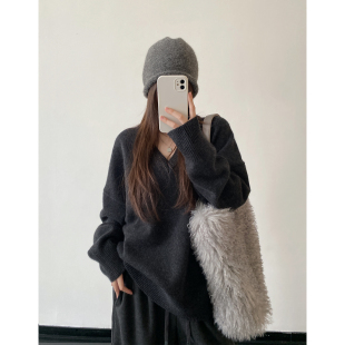 V领圆领宽松针织衫 复古简约慵懒百搭秋冬经典 毛衣 蓝调时刻 sun柚
