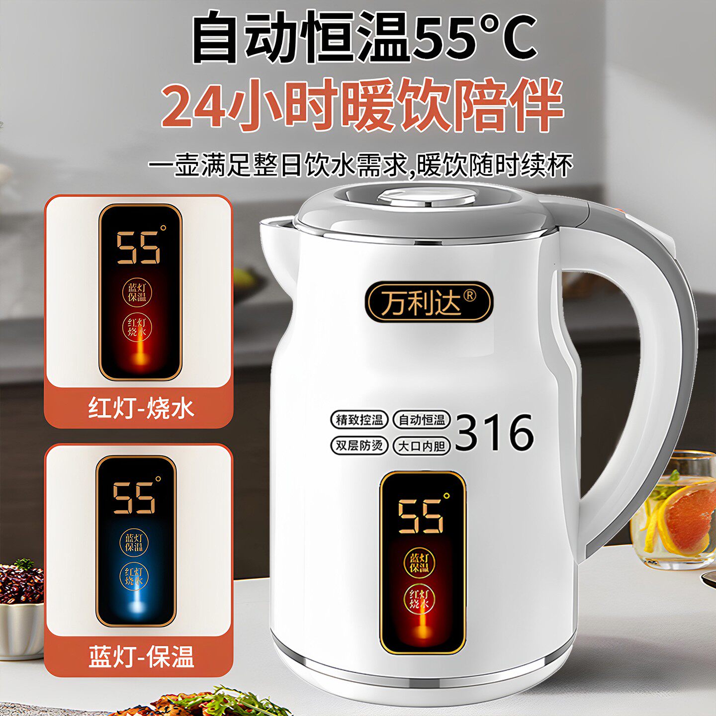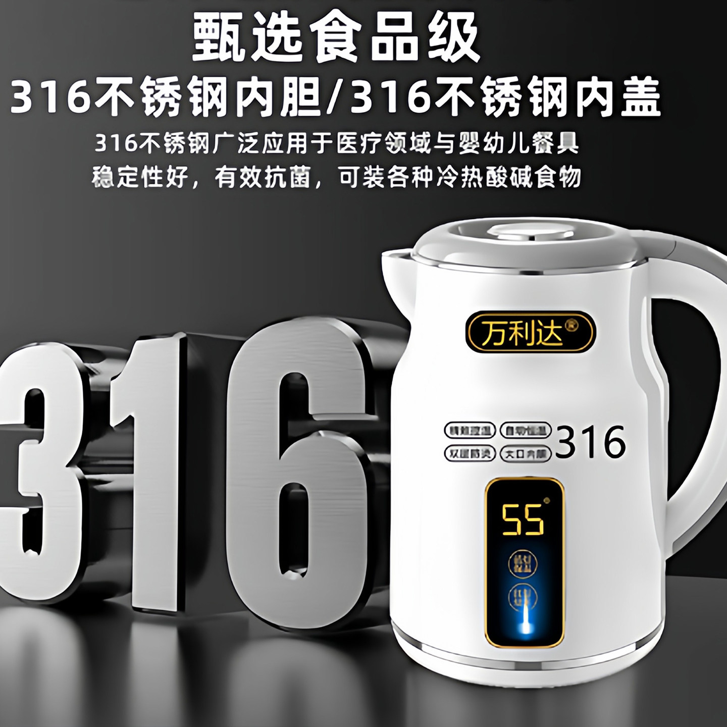 万利达316不锈钢电热水壶恒温智能家用保温一体2025新款 烧水壶