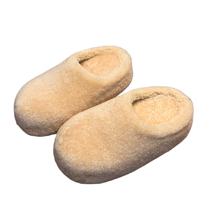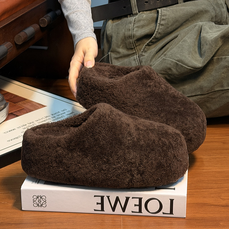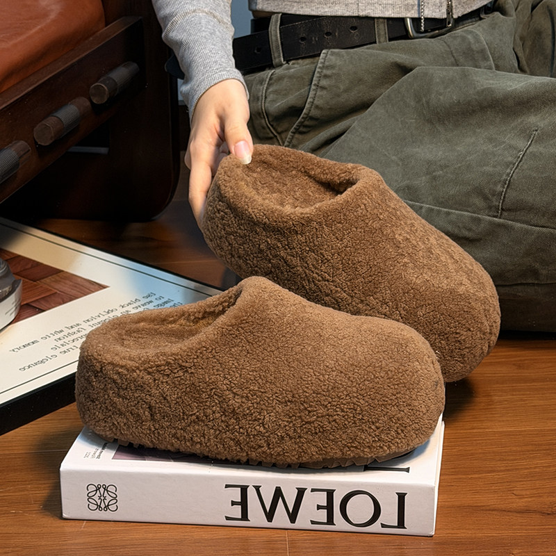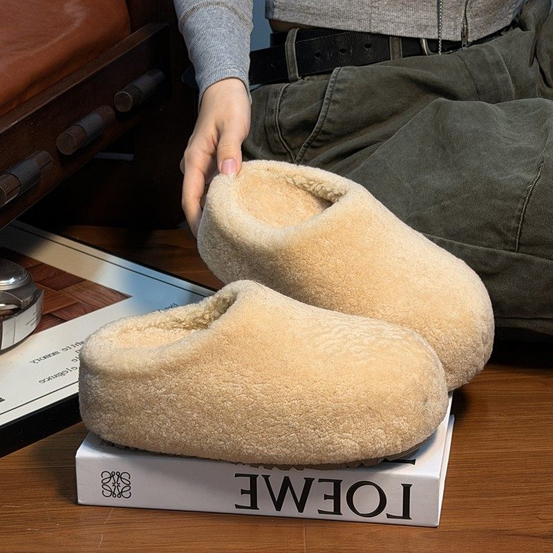 羊羔毛真皮大头松糕厚底包头半拖鞋 女外穿小个子增高加绒毛毛拖鞋