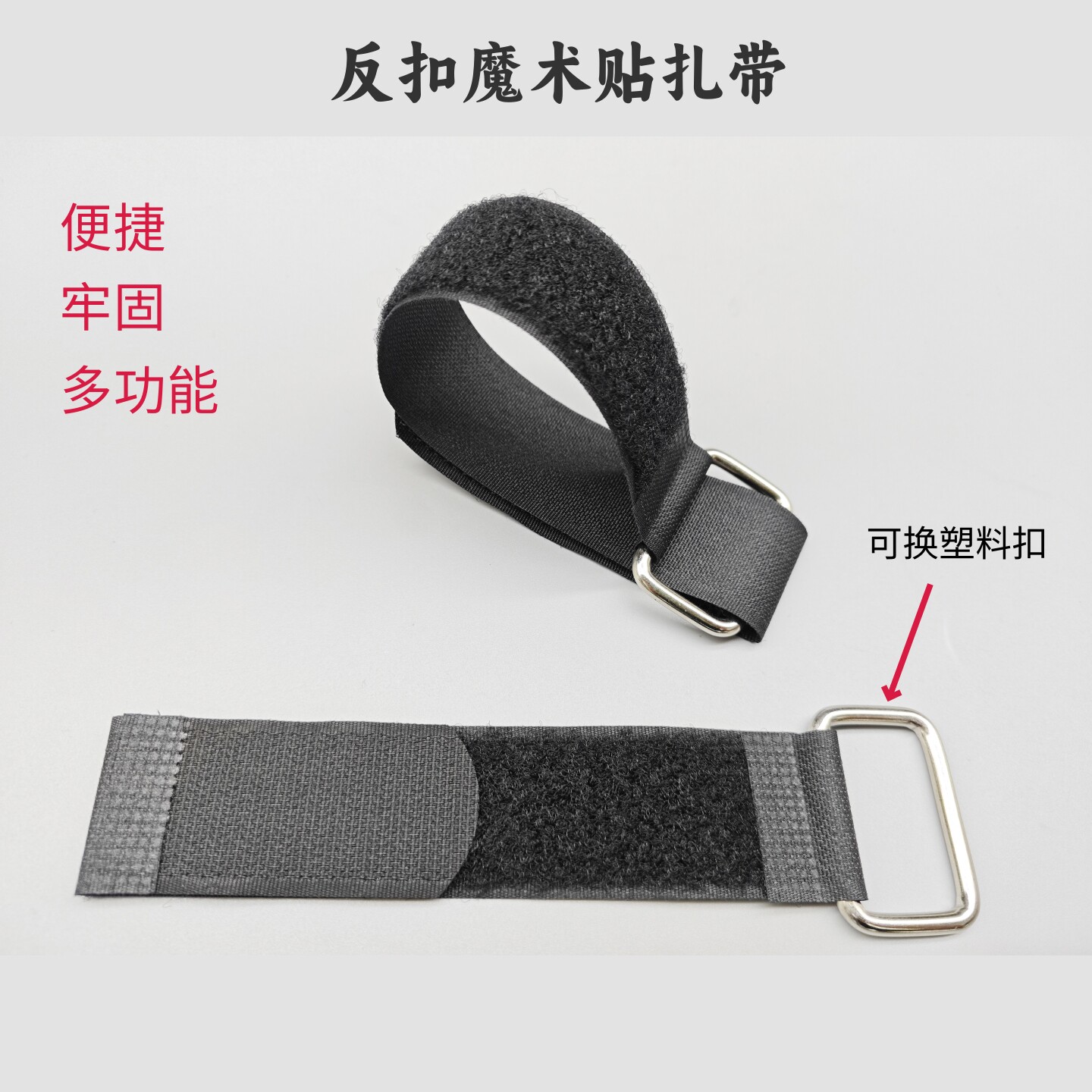 铁扣反扣魔术贴尼龙扎带捆绑自粘调节固定绑带行李货物束线粘扣带