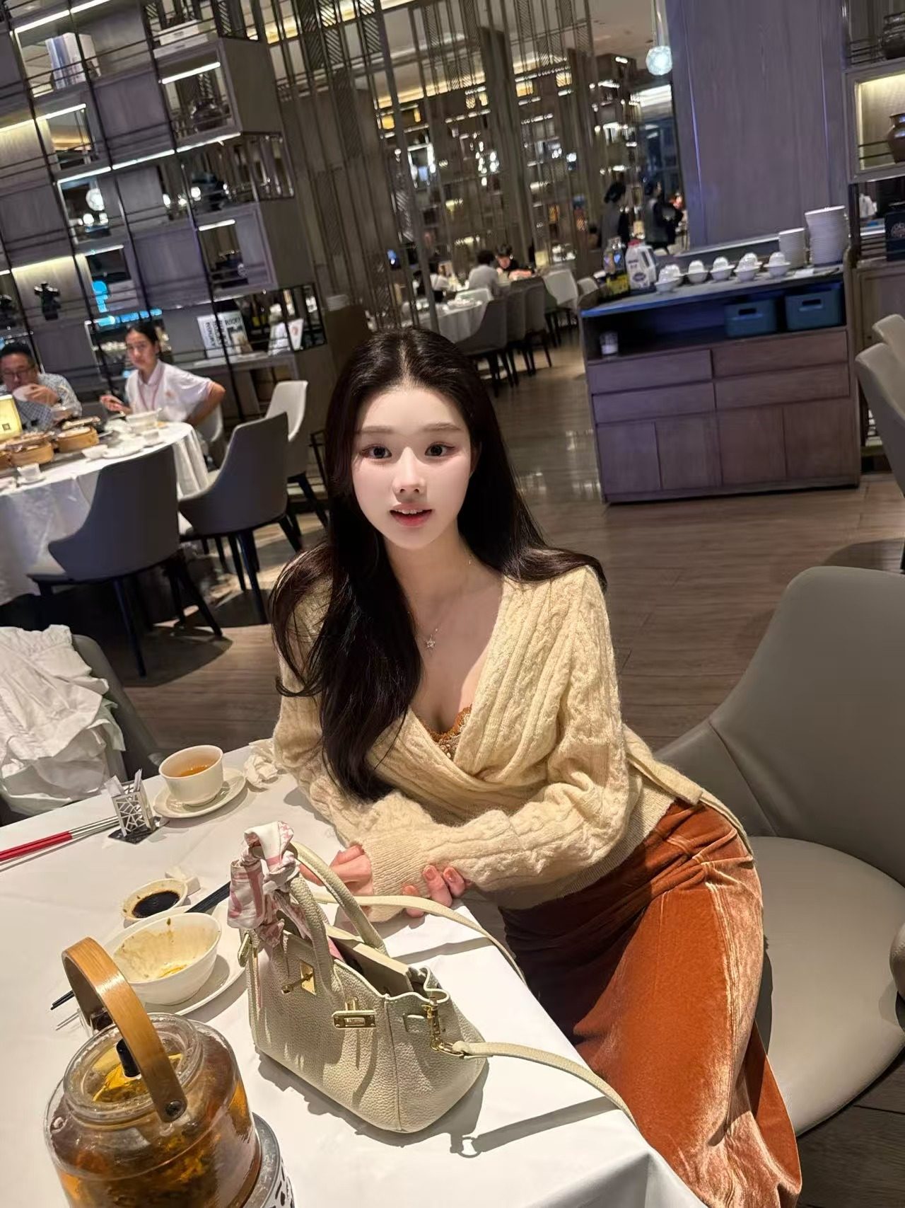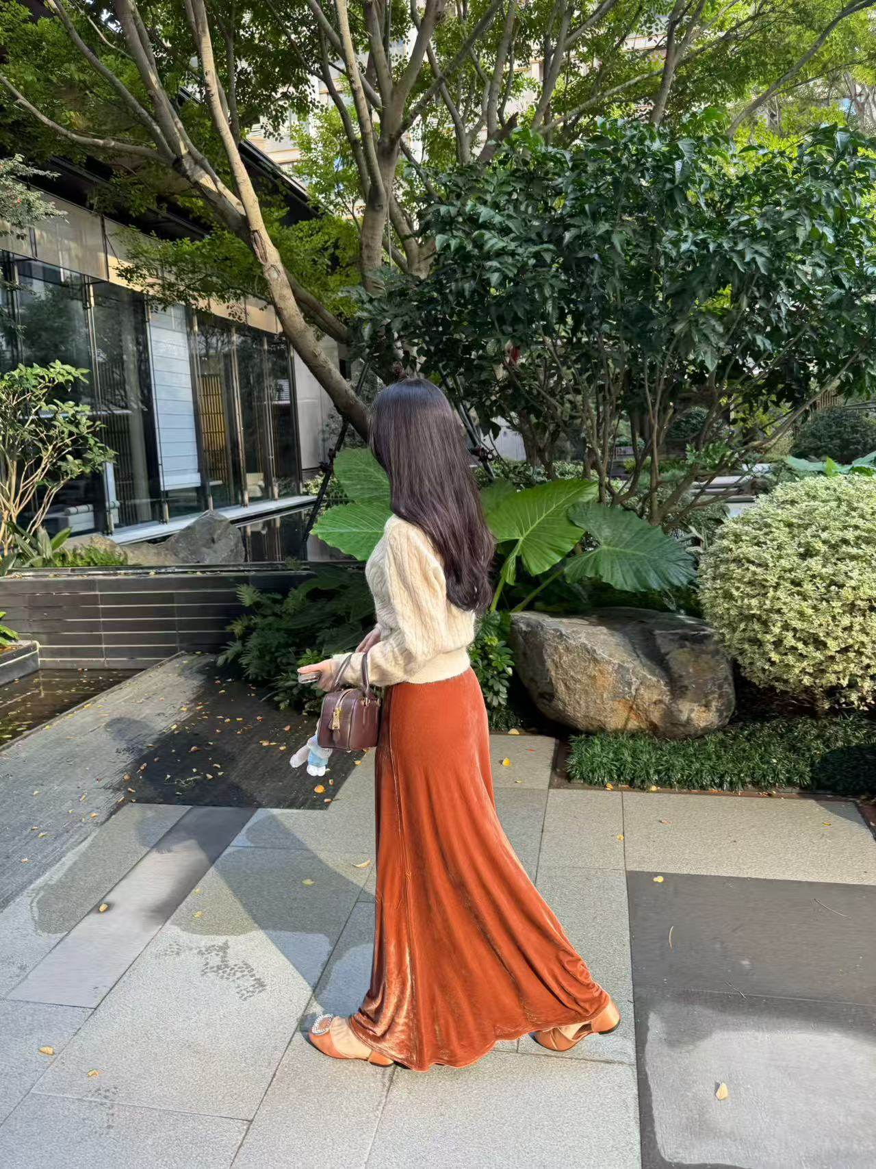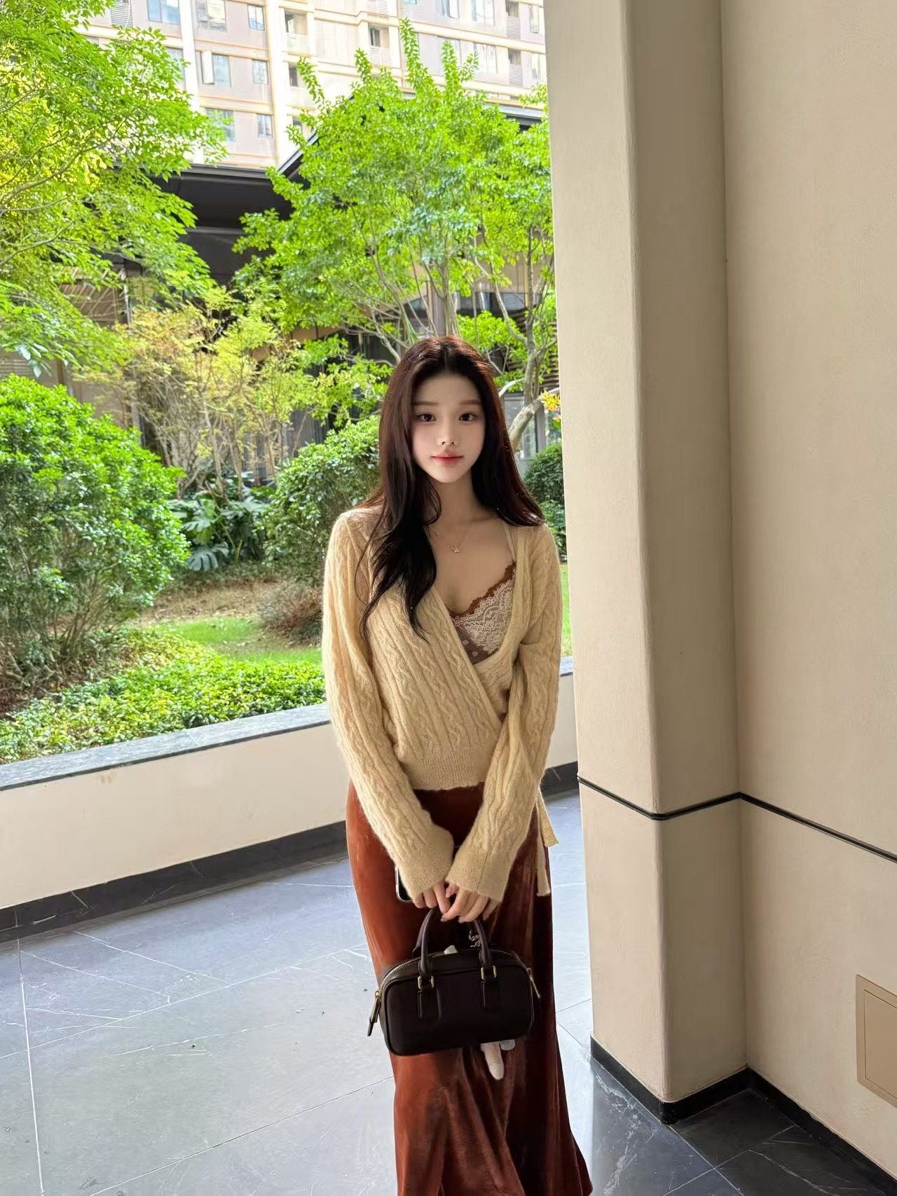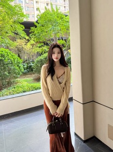 麻花女V领上衣T恤针织衫 时尚 丝绒半身裙 慵懒休闲 green大姐姐