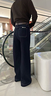厚款 冬磨毛设计感小众阔腿裤 小个子宽松 女2025新款 落落狷介牛仔裤