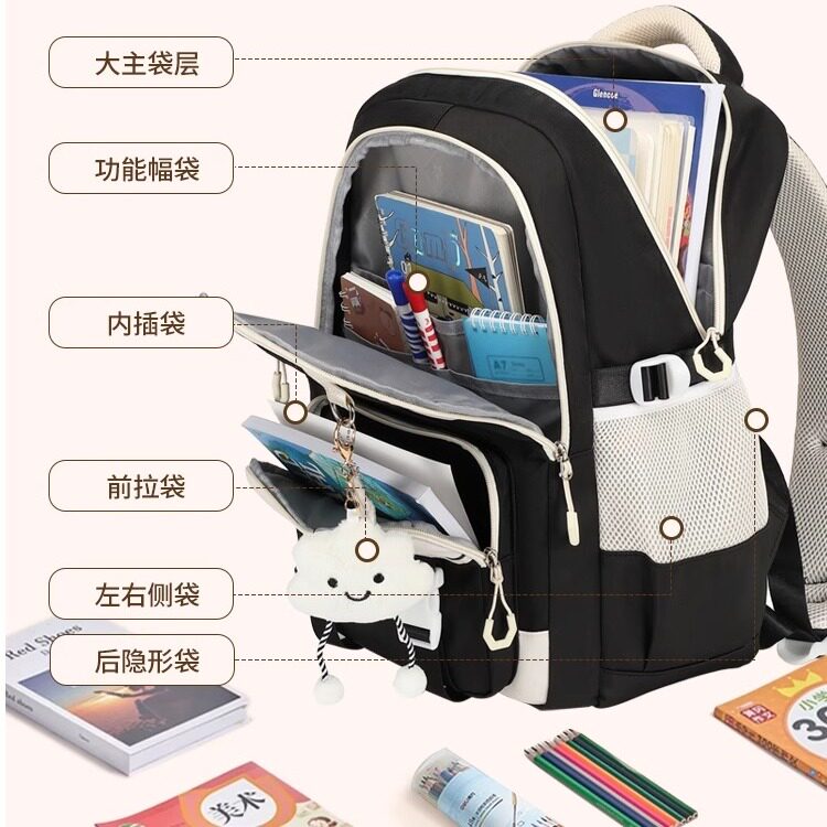 初中生书包女生大容量高中生轻便减负双肩背包高颜值小学五六年级