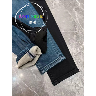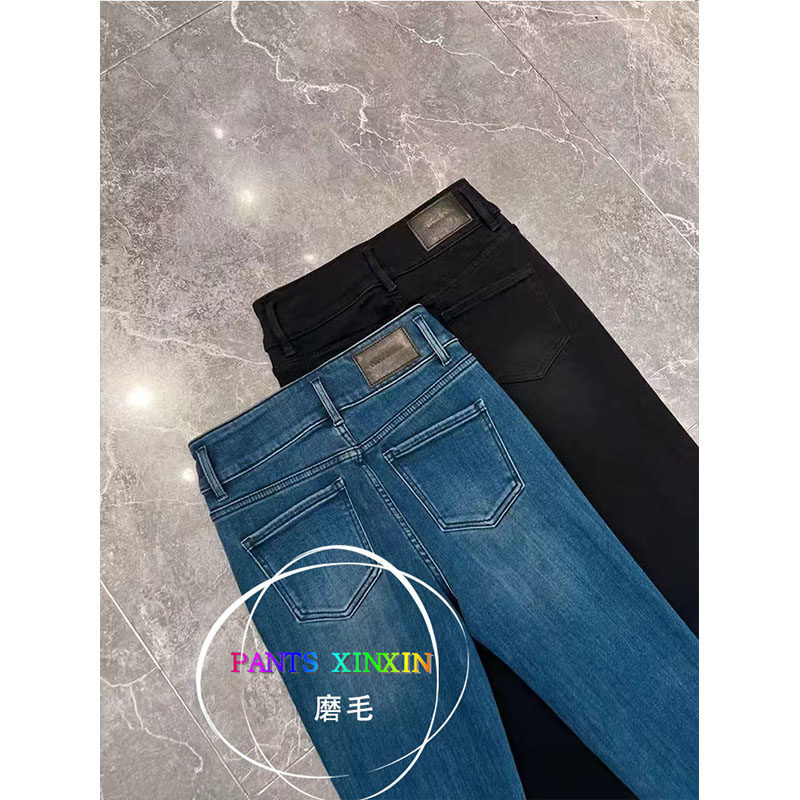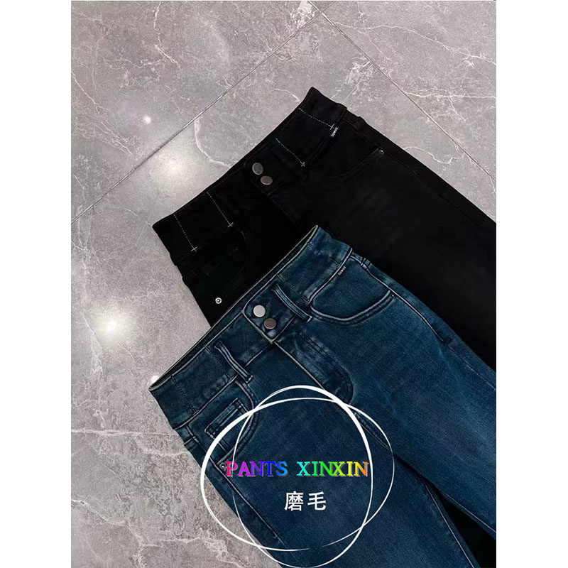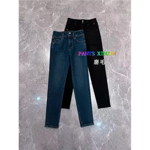 2025年冬季 女Q2498328 高弹力双纽扣磨毛九分牛仔黑色小脚铅笔靴裤