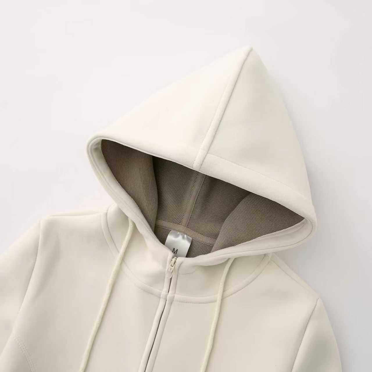 艾格2025新款 小蛮腰连帽双拉链摇粒绒内胆卫衣加厚上衣 早秋时尚