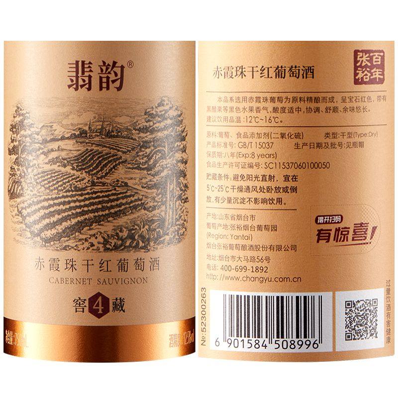 张裕赤霞珠干红葡萄酒国产红酒翡韵4双支礼盒送礼佳品750ml 2瓶