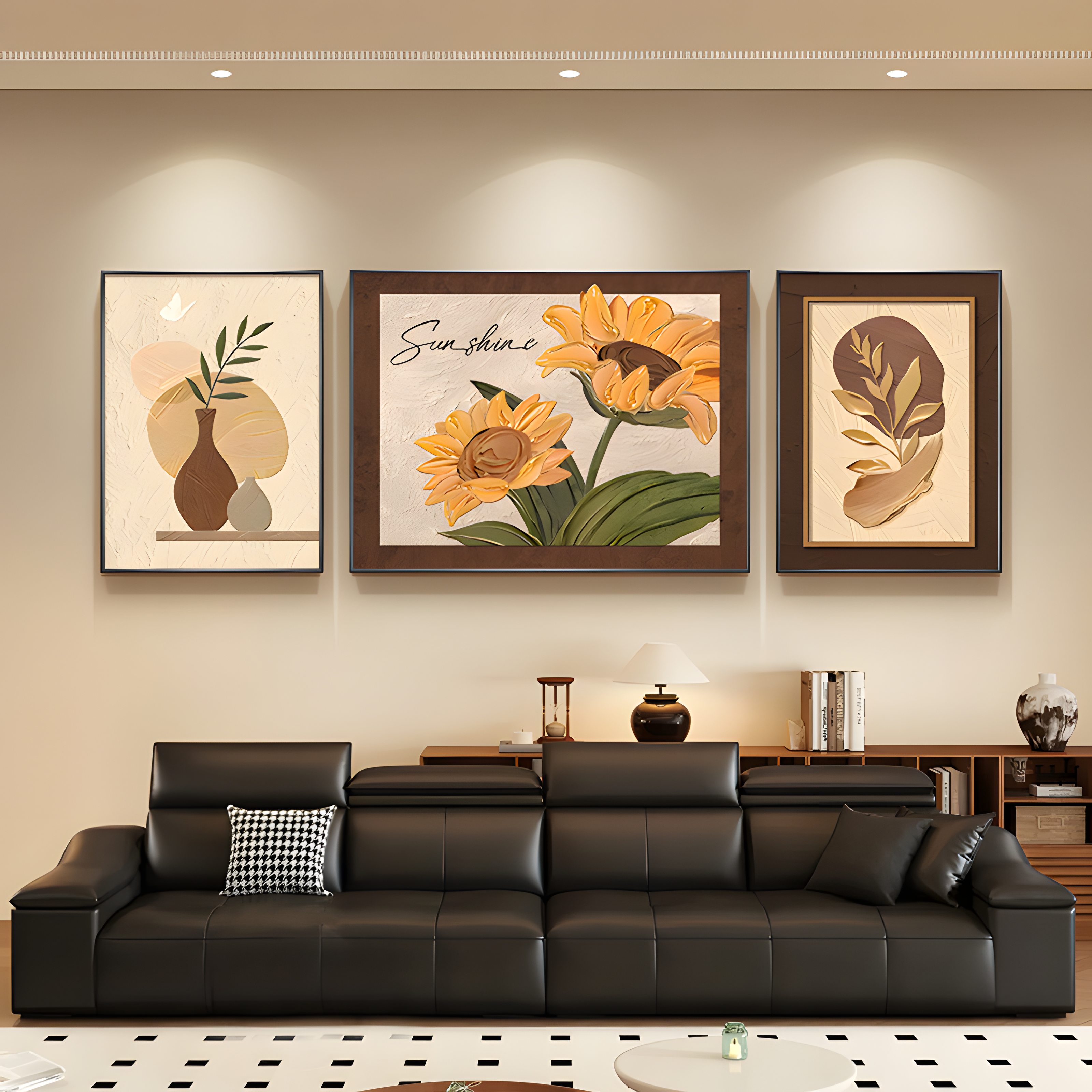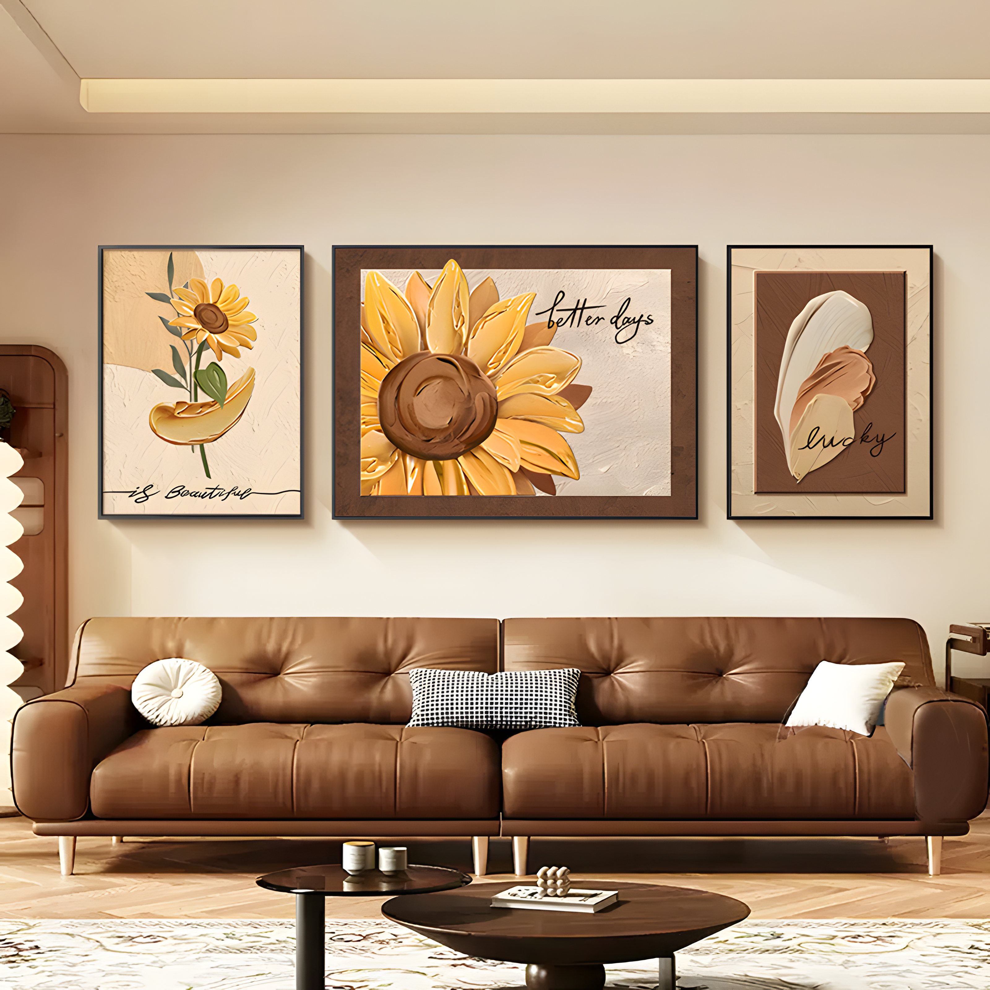向阳而生diy数字油画向日葵中古手工填色大幅尺寸客厅三联装 饰画