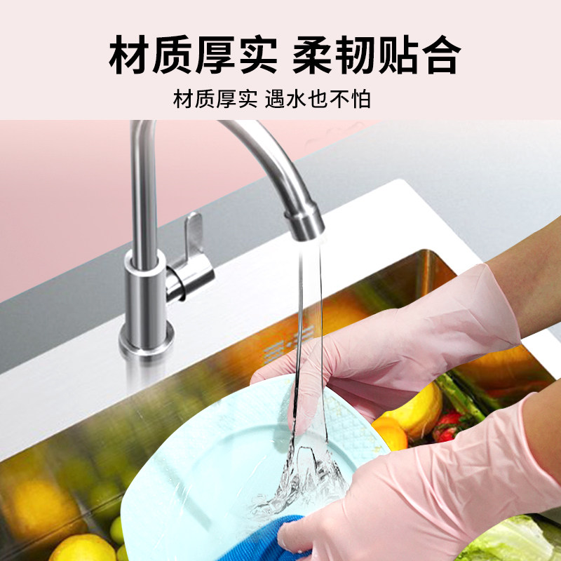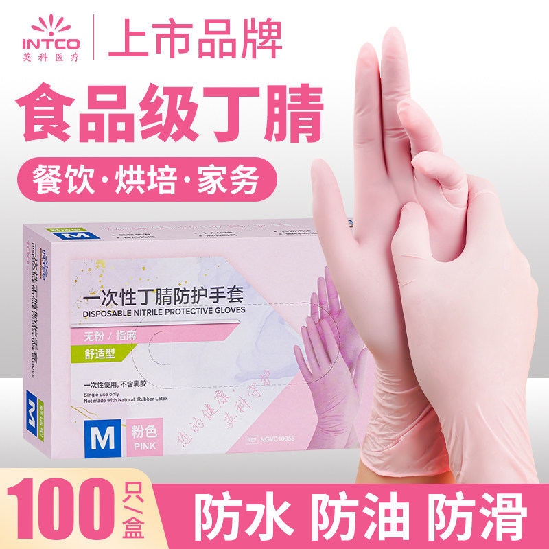 英科一次性粉色丁腈手套橡胶食品级家务厨房清洁洗碗餐饮烘焙专用