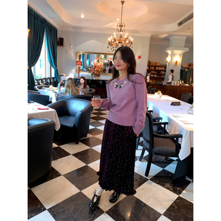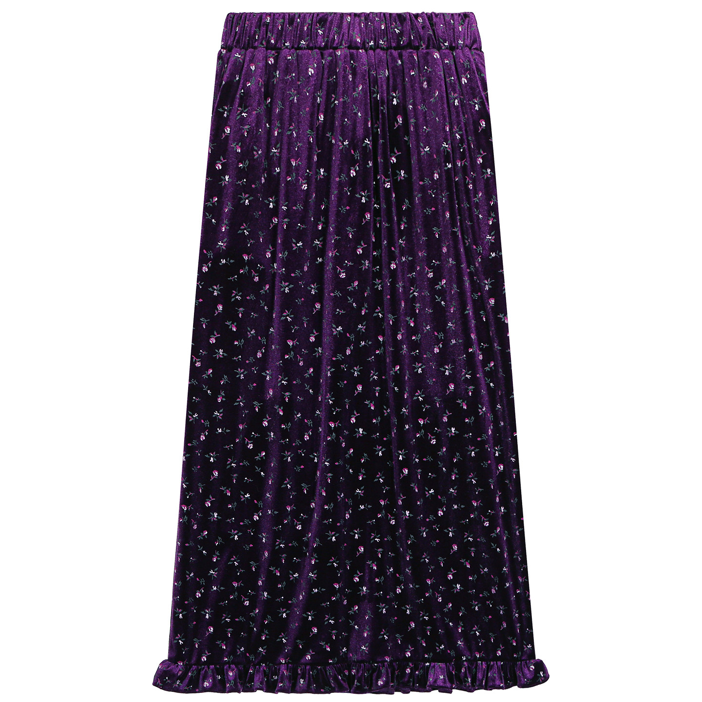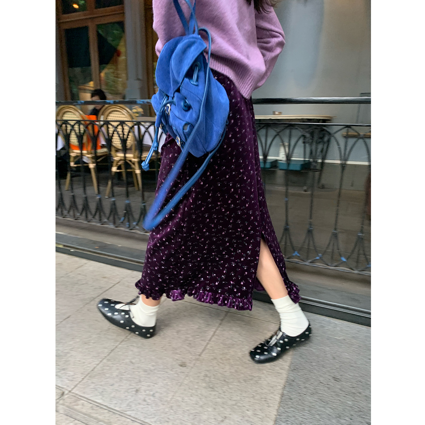 落落狷介 丝绒小个子半裙碎花裙 紫色碎花a字半身裙女2025年新款
