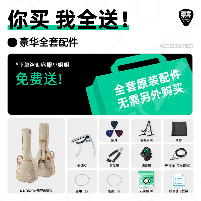 大树音乐屋 彩虹人520系列nino跨界尼龙民谣无痛旅行小吉他33寸