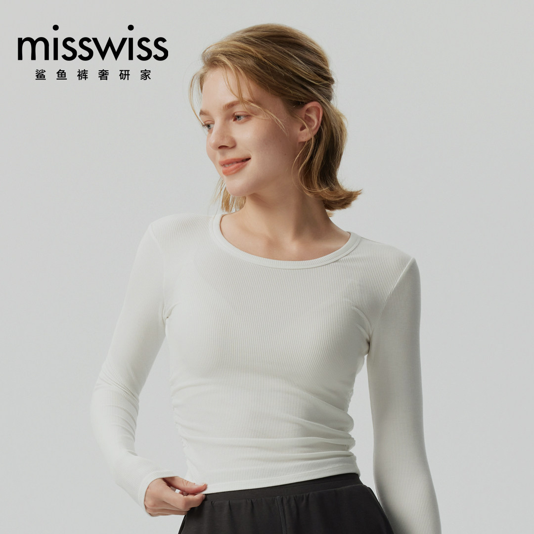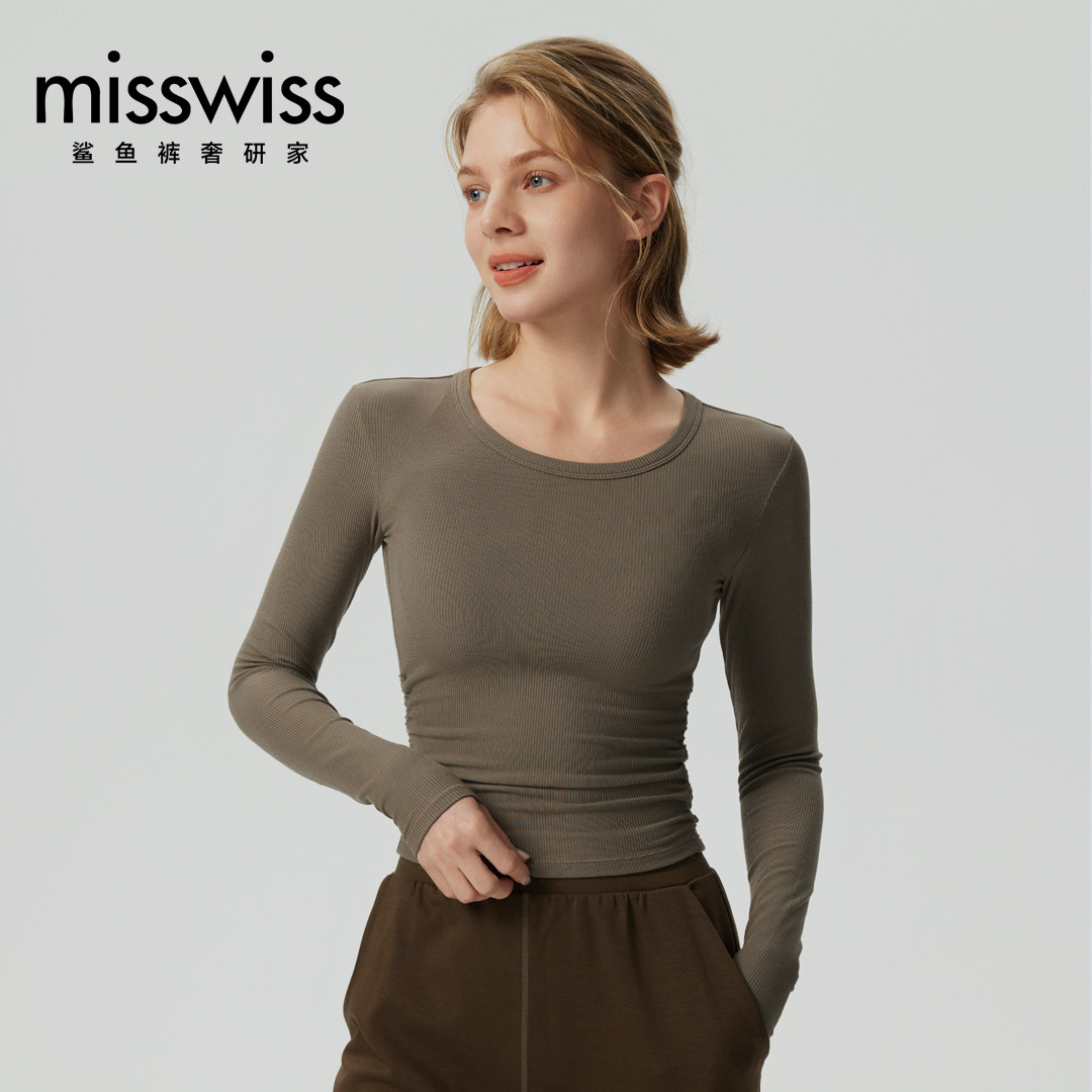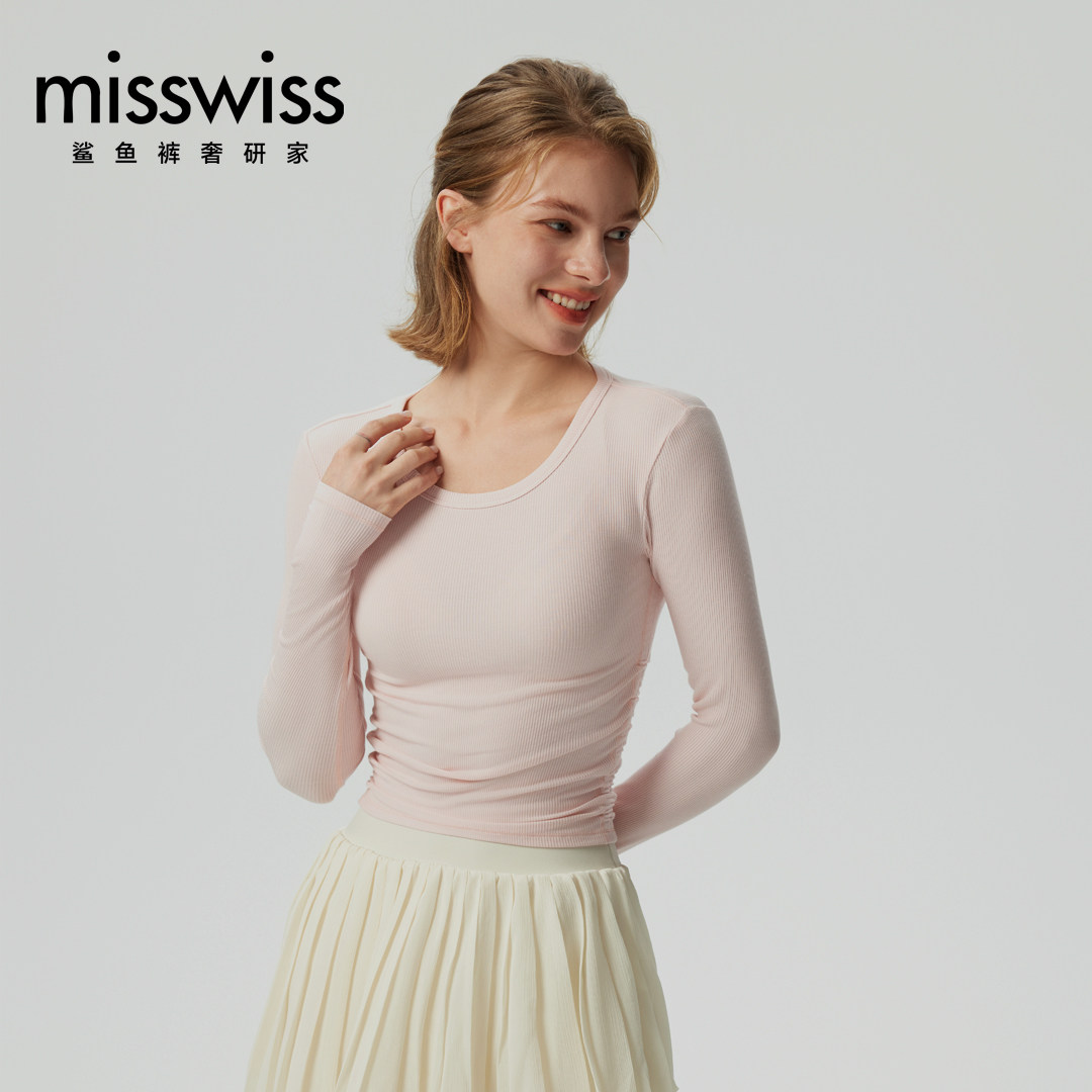 收腰显瘦长袖 MissWiss 2025秋冬款 抽褶针织衫 T恤内搭上衣 服饰