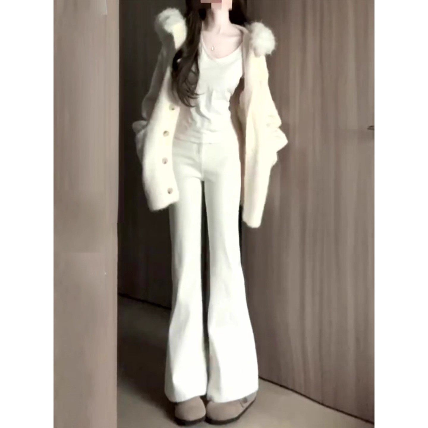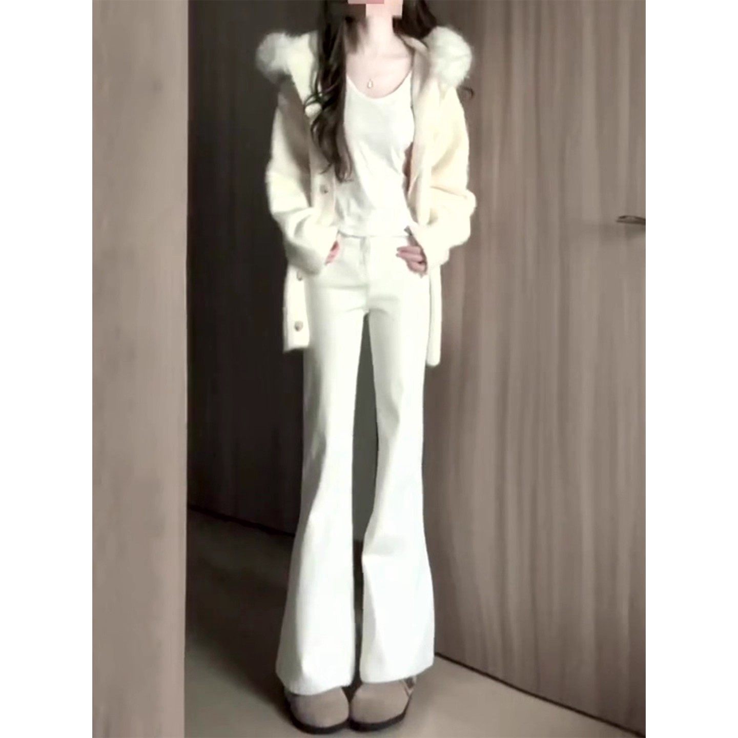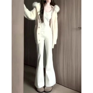 加绒喇叭裤 白色微喇牛仔裤 小个子高腰显瘦修身 2025新款 子 女秋冬季