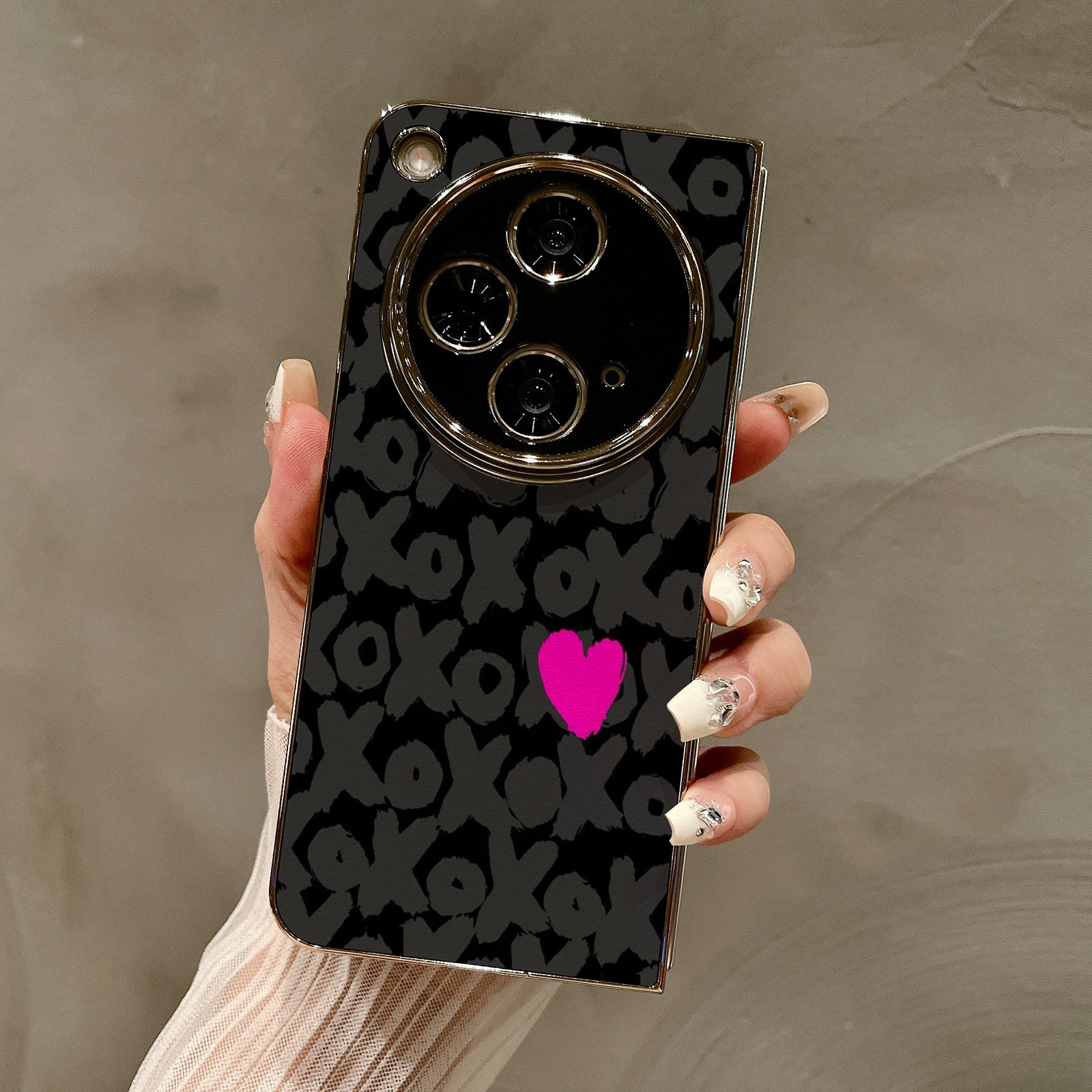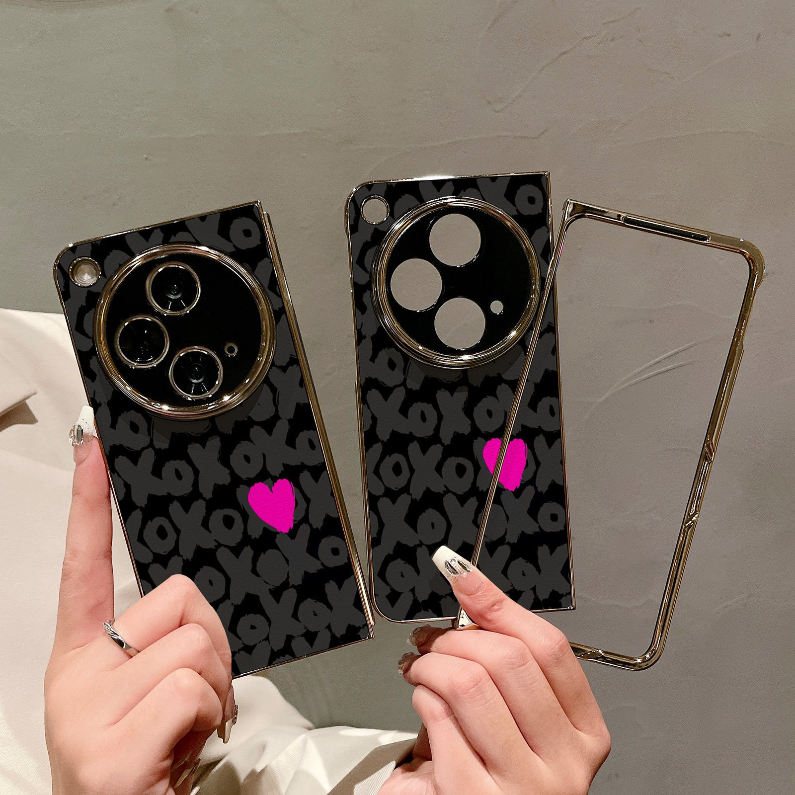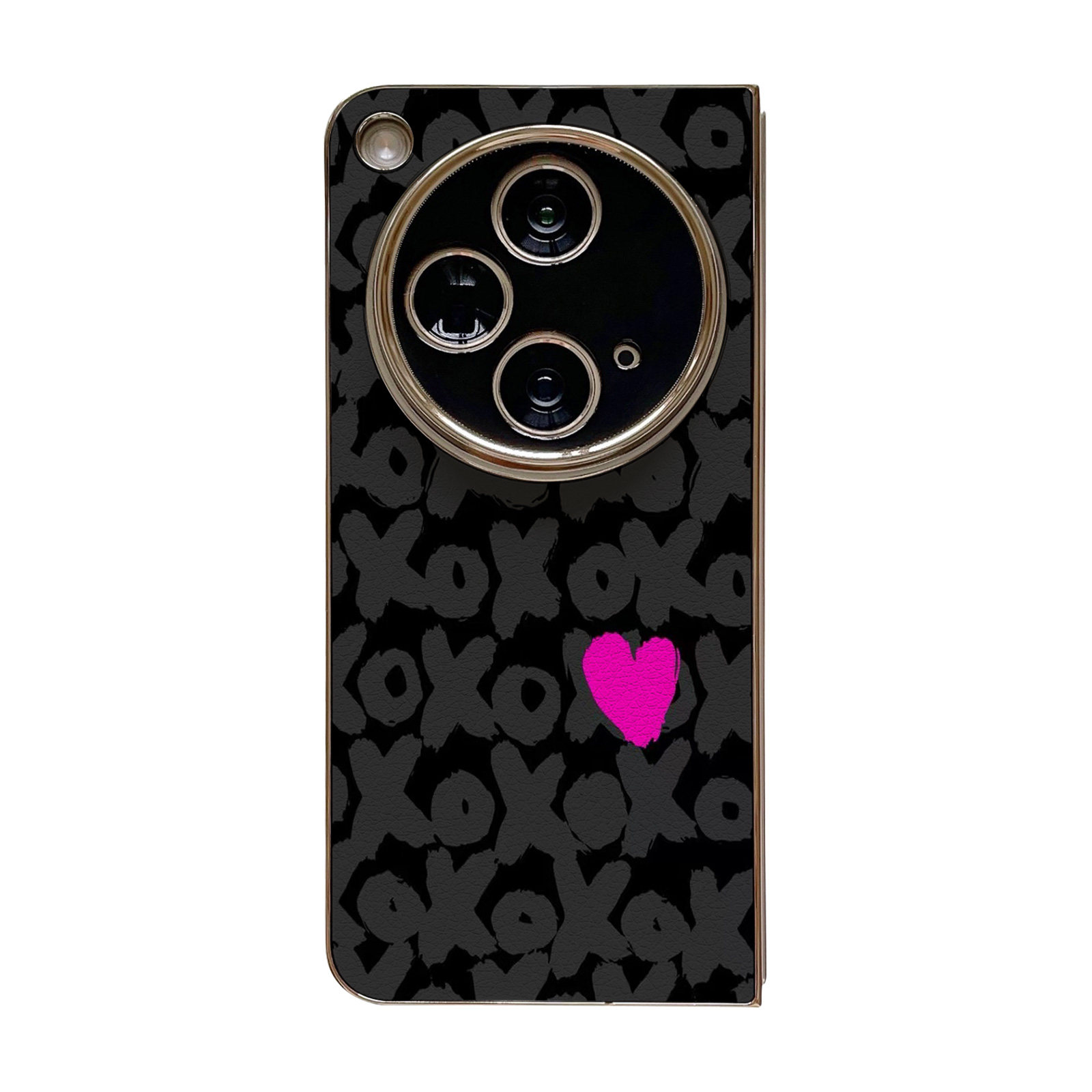高档气质电镀金边外壳高级感全包防摔套xoxo粉色爱心 N2手机壳左右折叠屏保护套新款 热瓜适用于OPPOFindN5