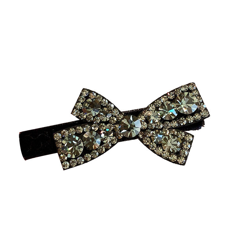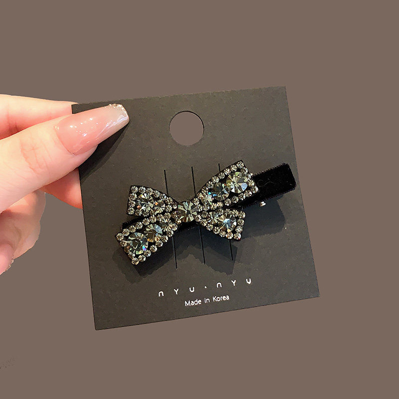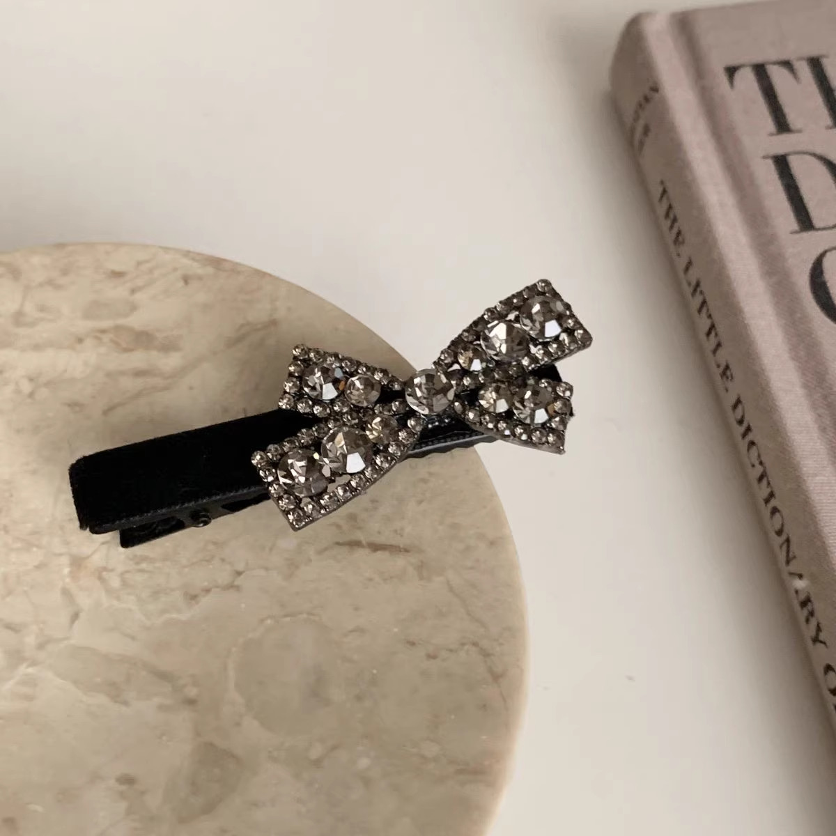 黑色丝绒发夹水钻蝴蝶结头饰刘海夹法式 一字夹网红轻奢鸭嘴夹发卡