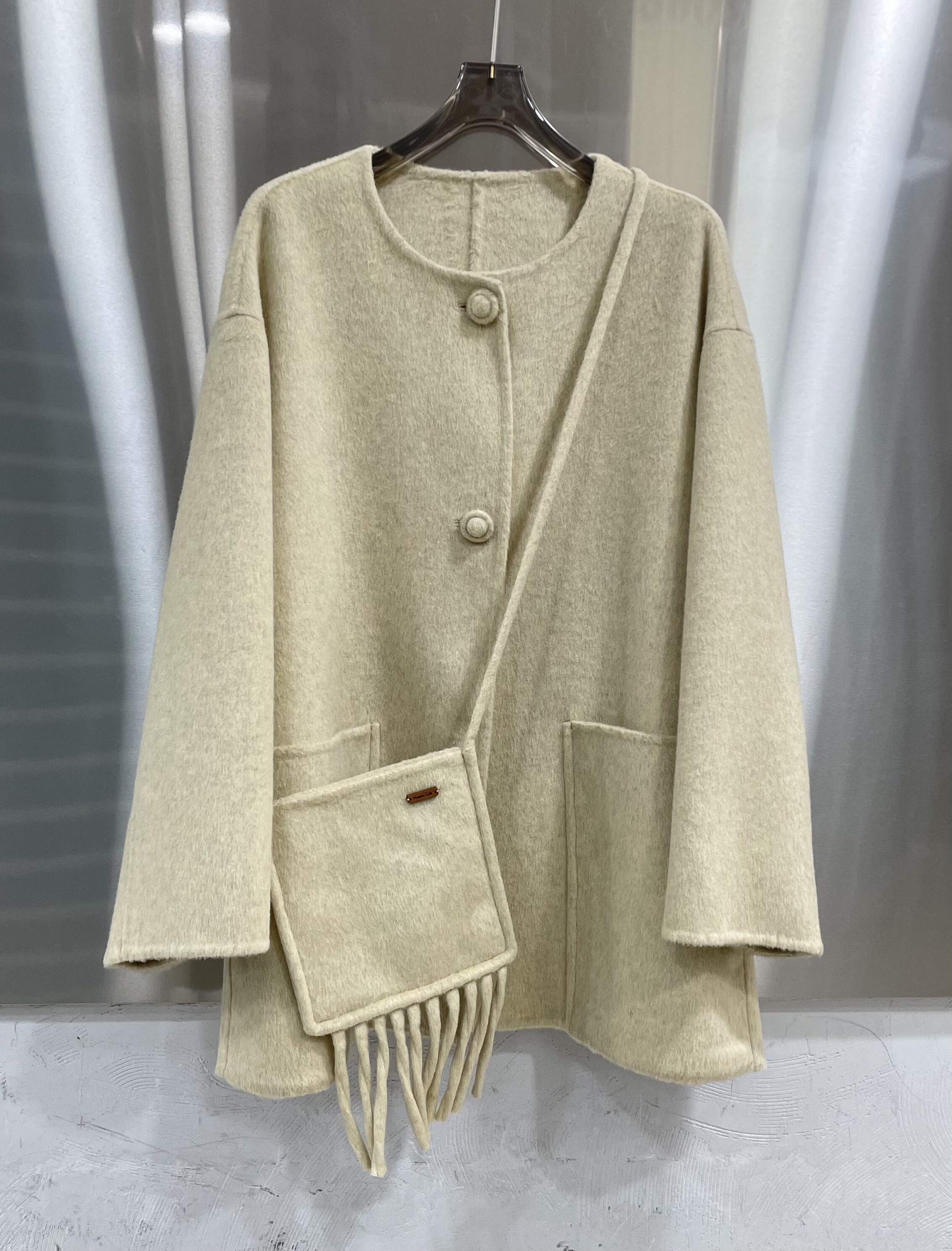 宽松纯色双面呢外 时尚 2025冬季 韩系双面羊绒大衣女附带包包中长款