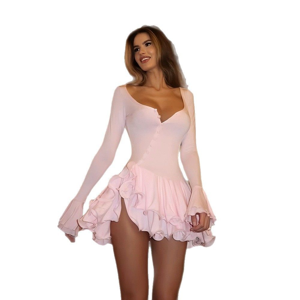 Summer Dresses Clothes低胸性感辣妹纽扣连衣裙欧美 Women Sexy