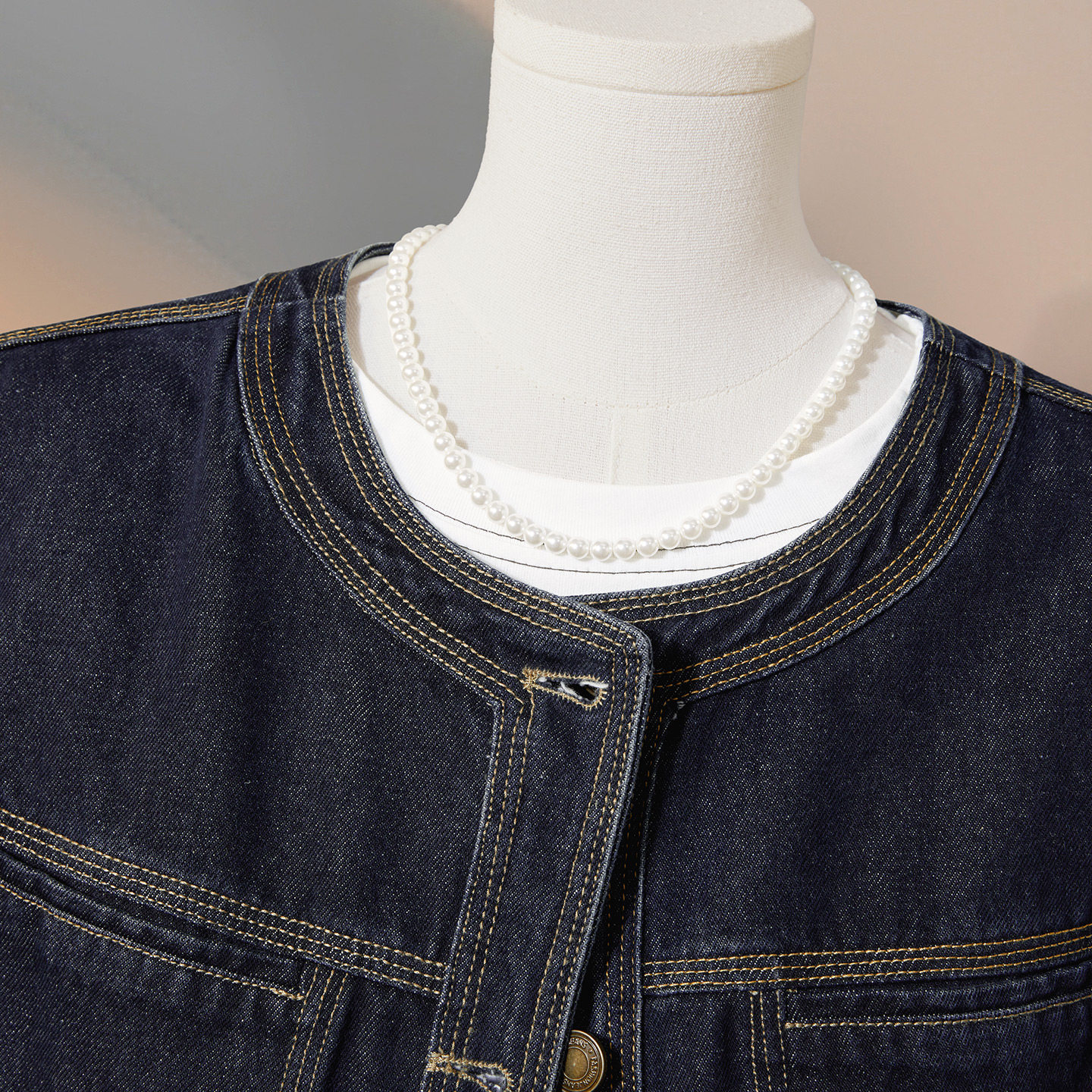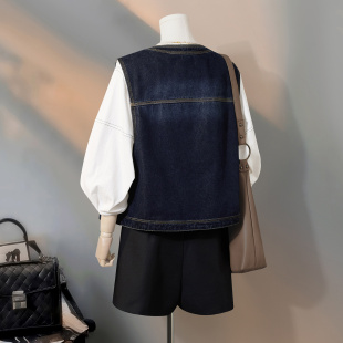 复古简约圆领单排扣宽松款 女装 叠穿马甲 新款 她池牛仔马夹2026春装