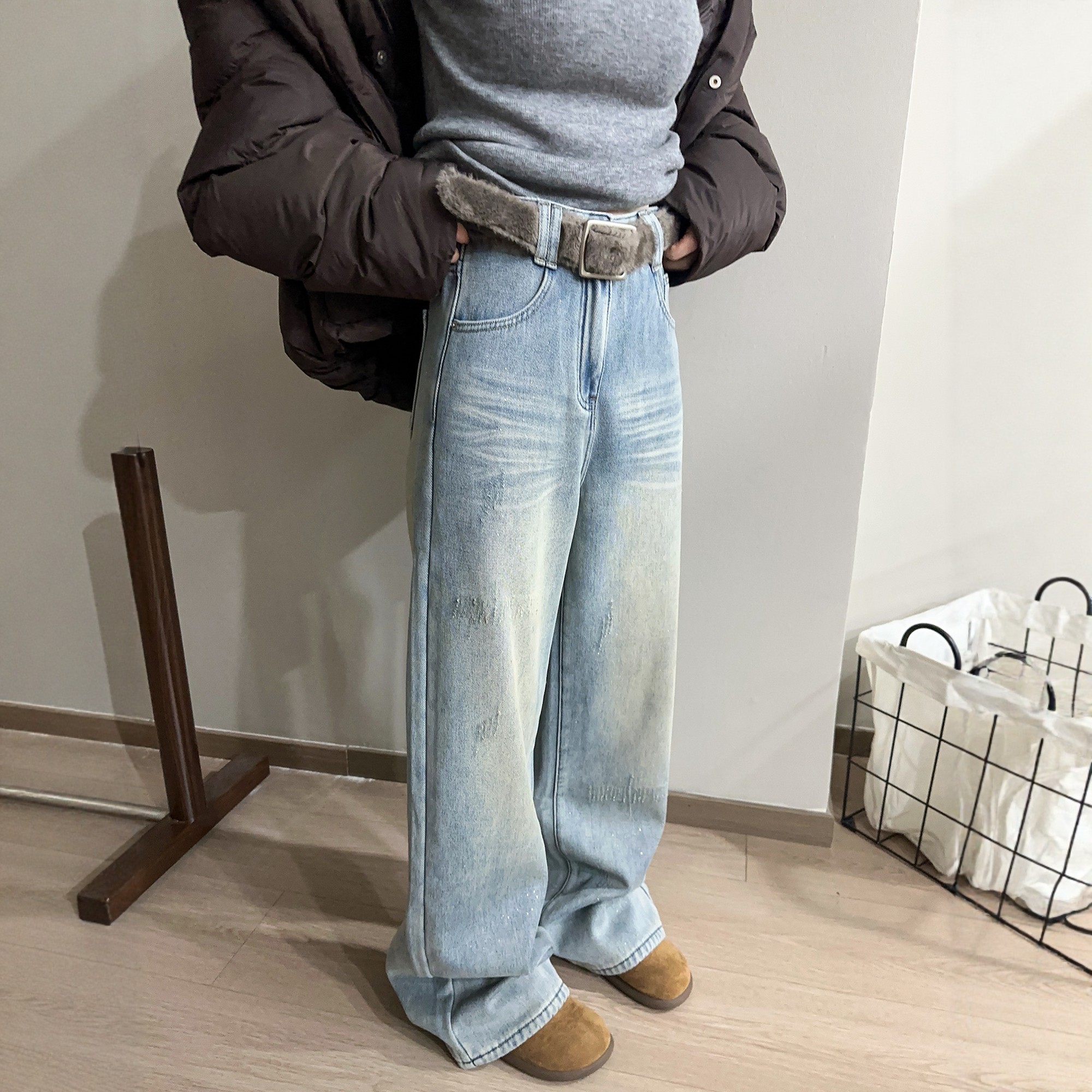 7222 街头感重工酵洗斜门襟两色牛仔阔腿裤 鹿与飞鸟 超有态度
