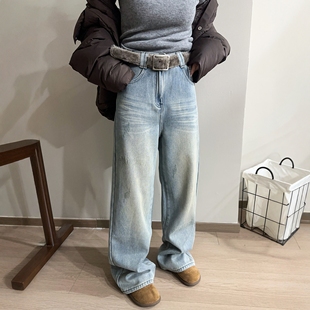 男复古宽松潮流百搭阔腿长裤 悟空有货美式 潮牌做旧小众直筒牛仔裤