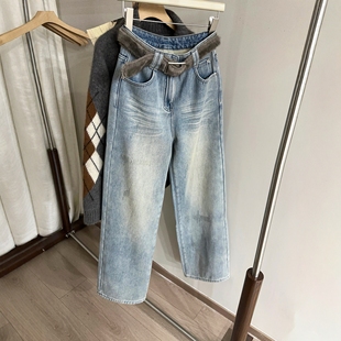 胖mm高腰遮胯显瘦微喇马蹄裤 加绒加厚复古蓝微喇牛仔裤 女秋冬大码