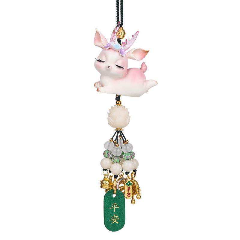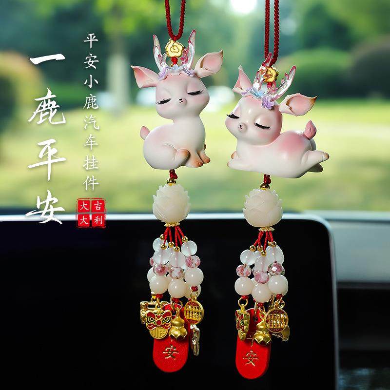一路平安檀木小鹿高级感车载汽车挂件车内装 饰品挂饰后视镜吊坠绳