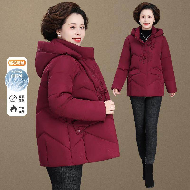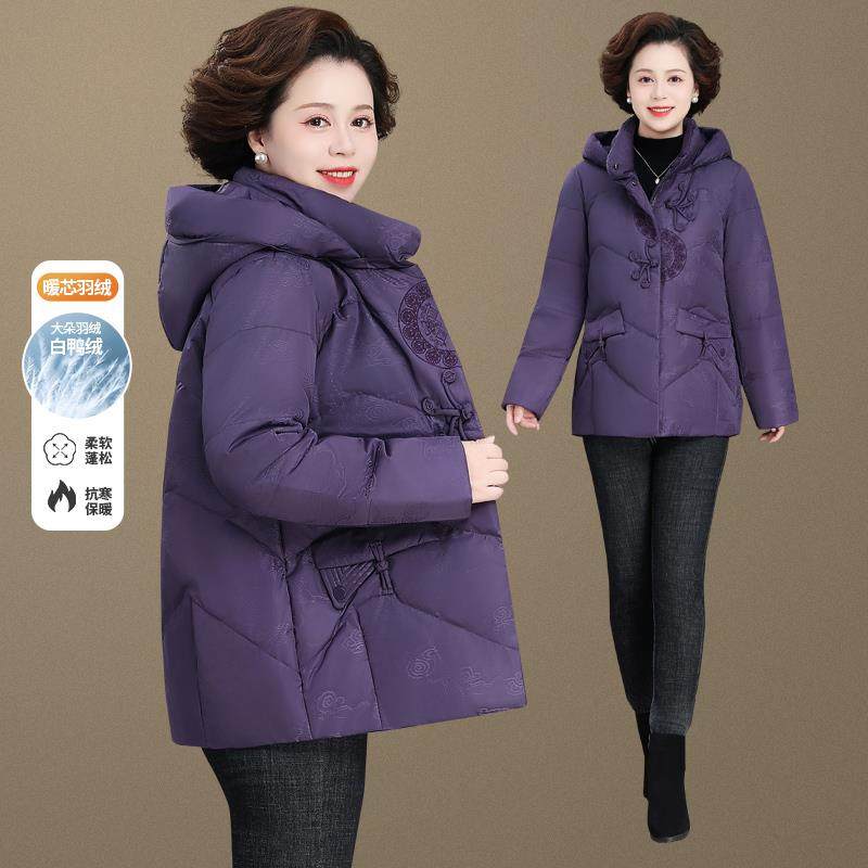 白鸭绒羽老绒服中年妈0妈短小棉袄洋气224新款 女秋84296284 中年款