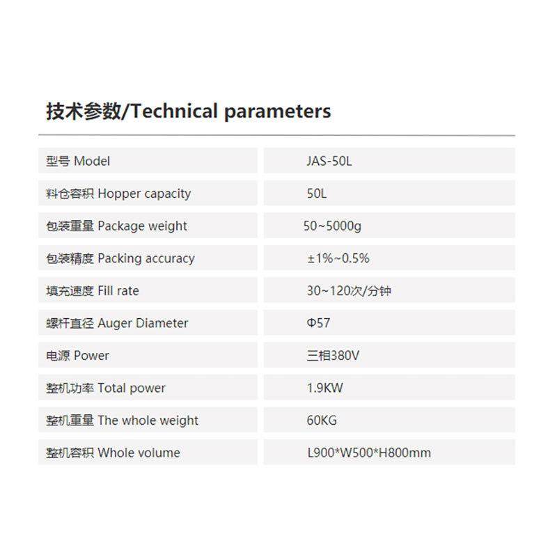 大型立式 50L粉剂充填机包装 机螺杆计量机JAS 5000g 粉末包装