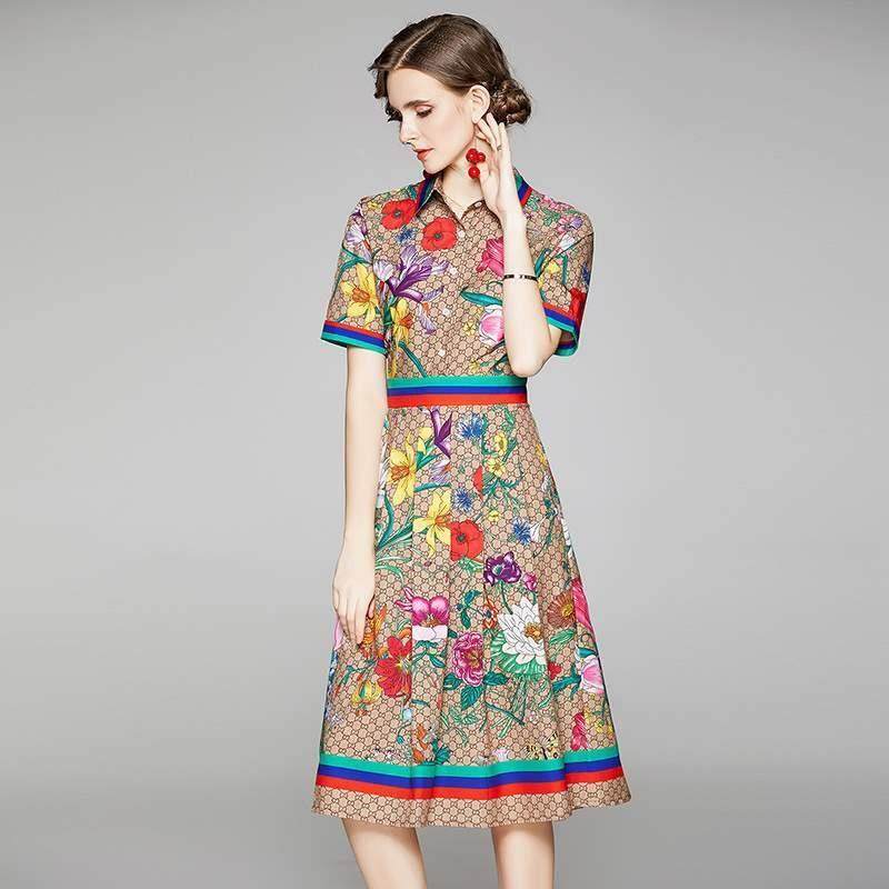Summer Dress Shirt Women Letters Runway Buttons Flower