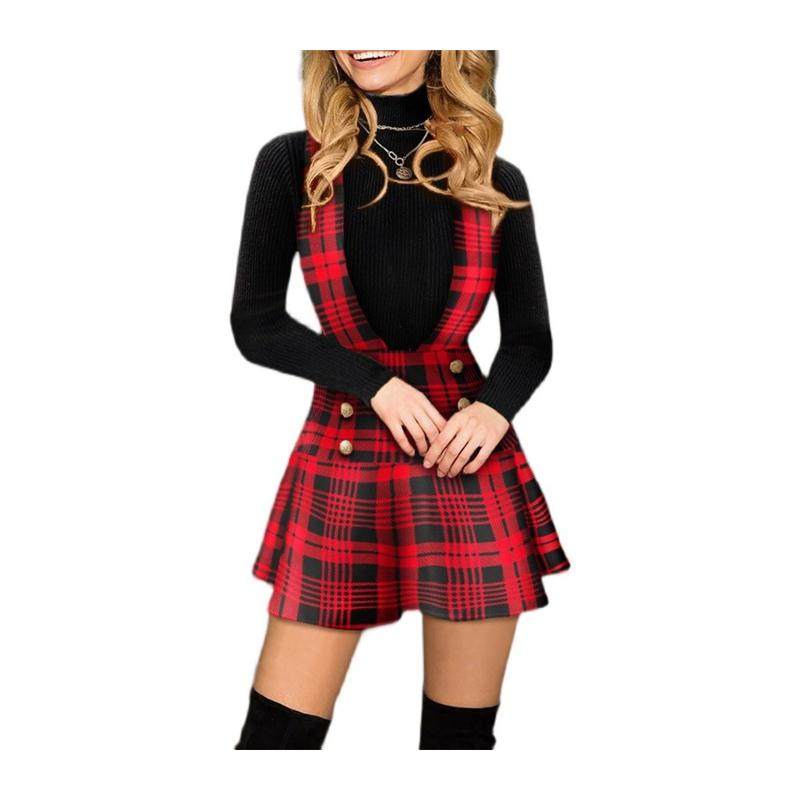 Dress Christmas Strap Plaid 欧美圣诞节红色格纹高腰背带裙 Red