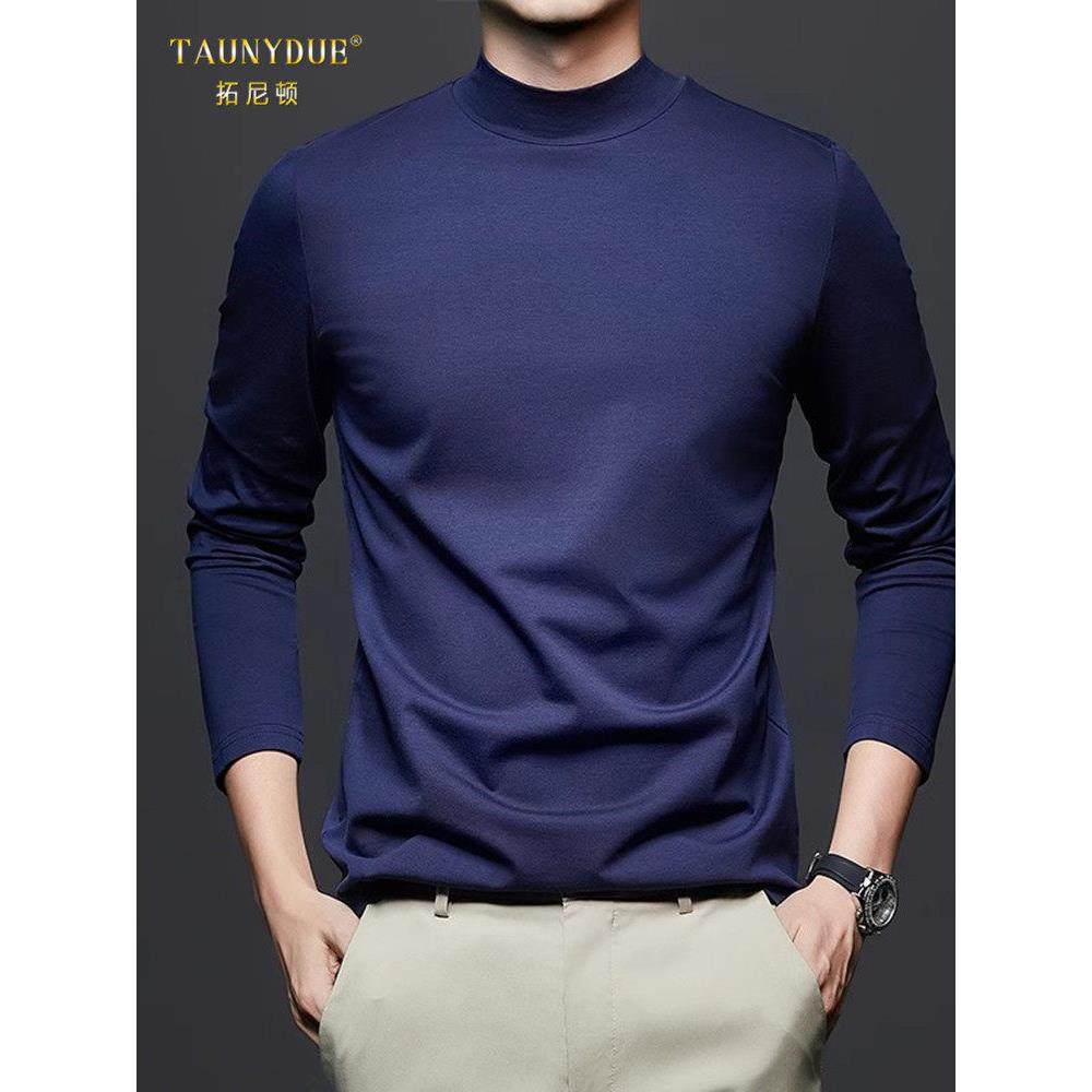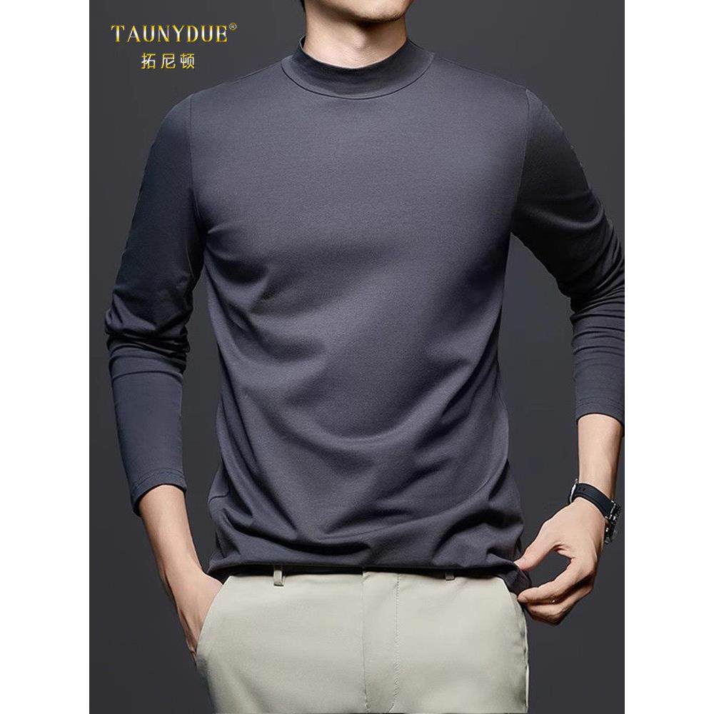 秋冬白色上衣男装 男士 内搭中领秋衣 t恤打底衫 莫代尔棉半高领长袖