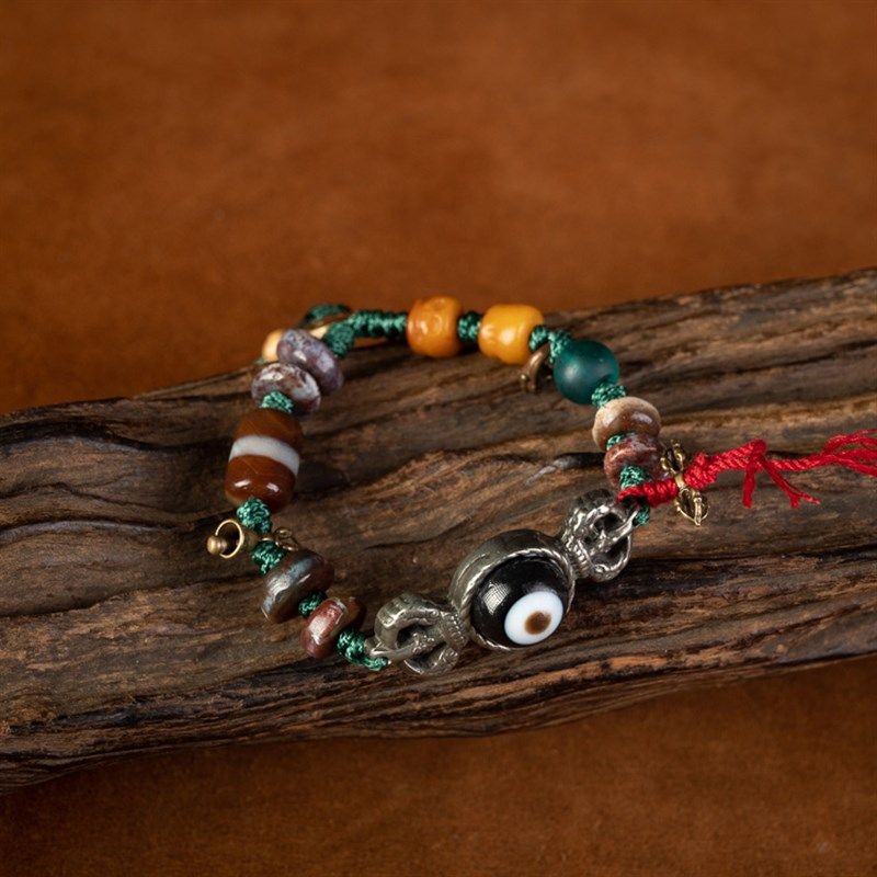 清代老镶镶寒铁降魔杵千年三色老羊眼设计托甲编款 手钏 多宝藏式