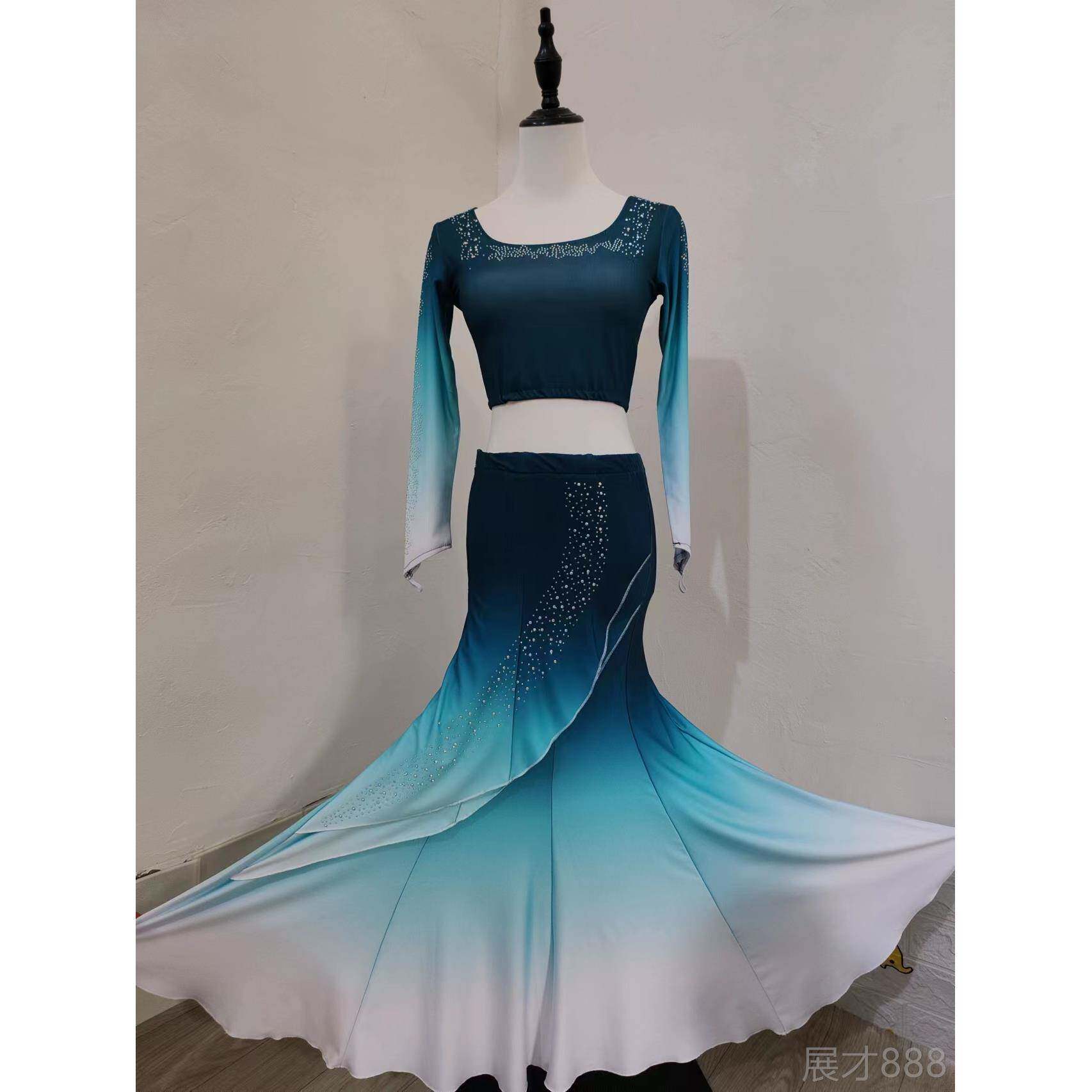 正品 孔雀舞功服包渐层色 族成人傣舞蹈演出服单肩臀练艺考伞舞服装