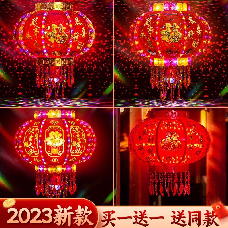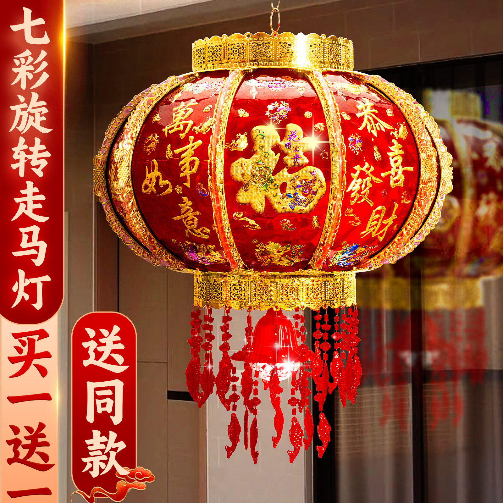 2025新款 led七彩旋转彩灯大红灯笼大门口一对走马灯结婚春节新年