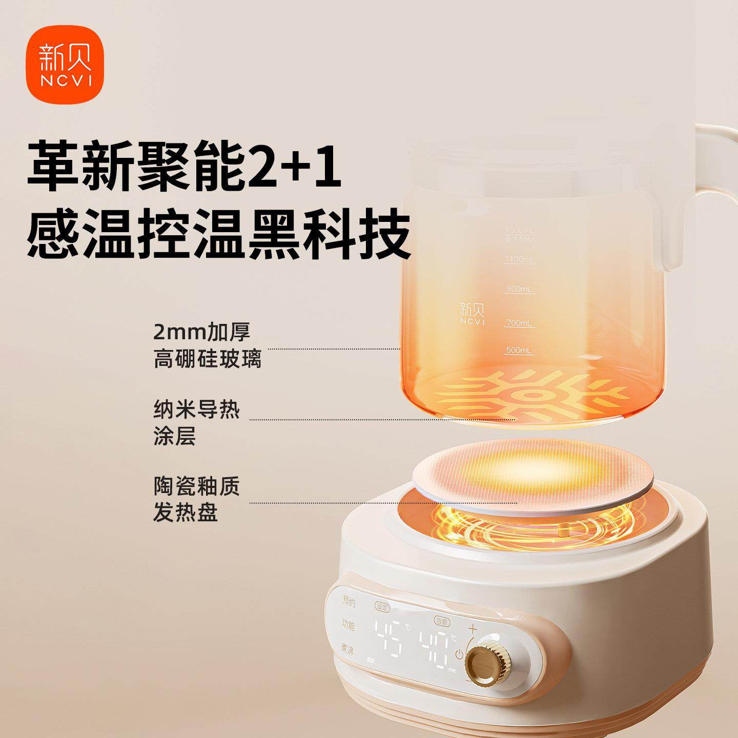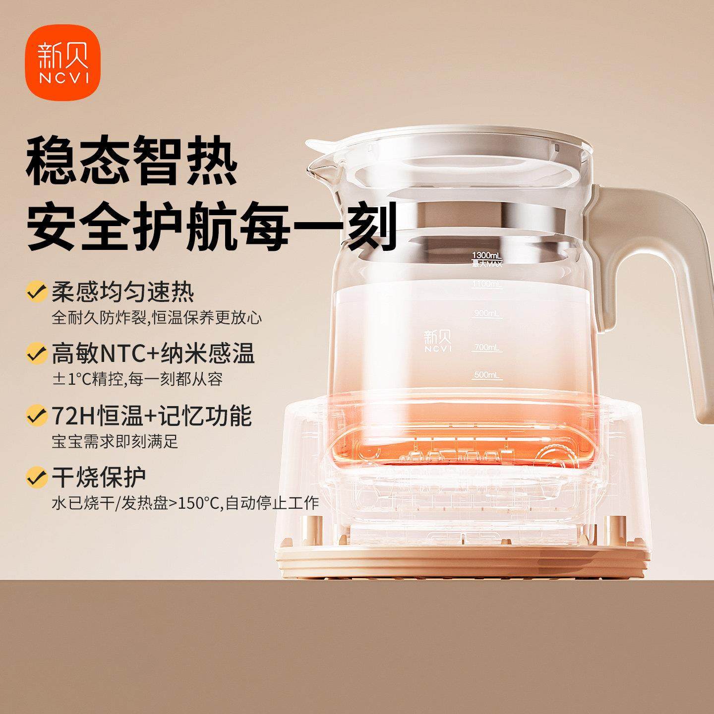 新贝全玻璃恒温热水壶婴儿家用冲泡奶新生儿暖奶专用调奶器烧水壶
