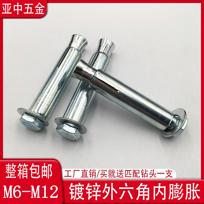 外六角内膨胀螺丝拉爆螺丝钉地板膨胀螺栓内置式 膨胀管m6m8m10m12