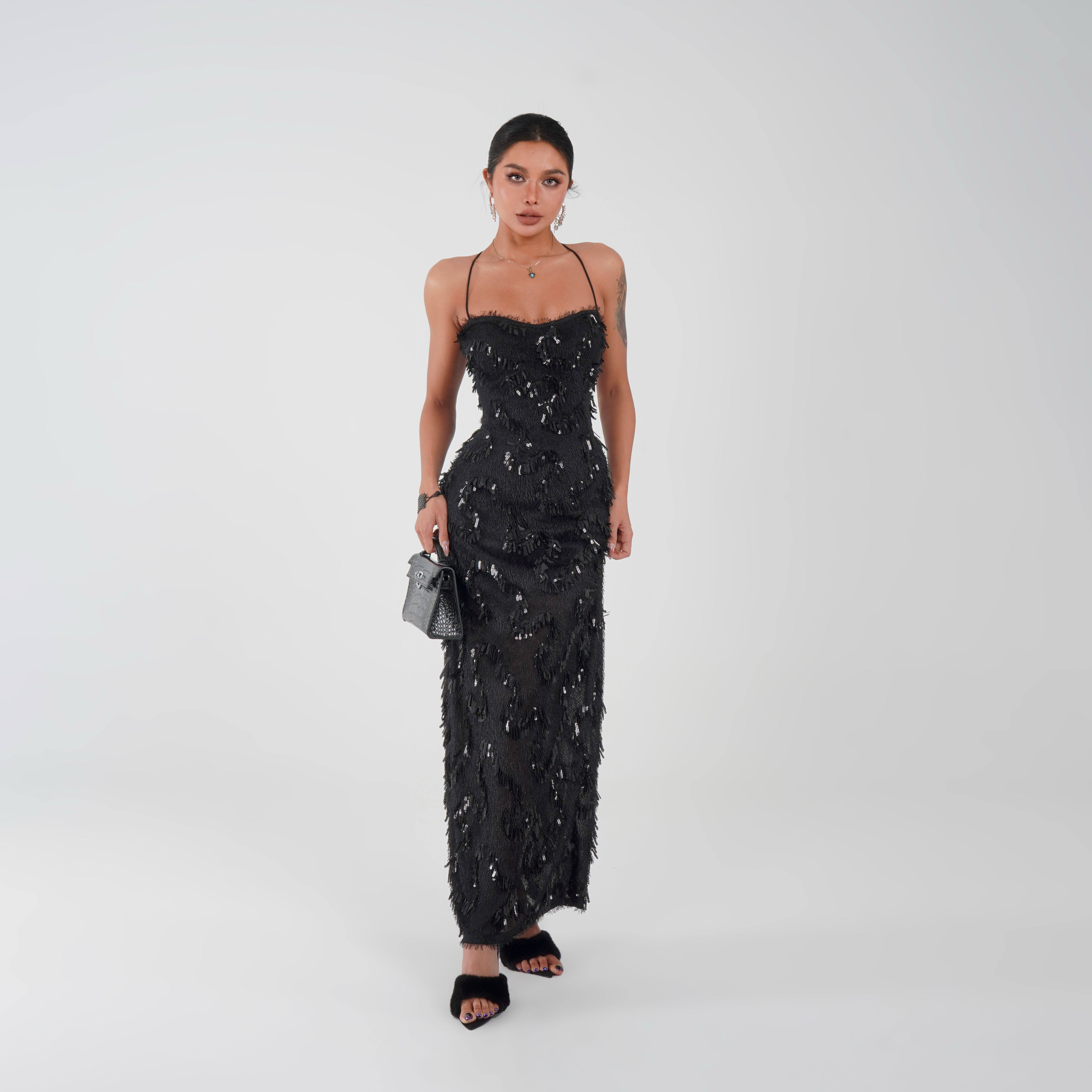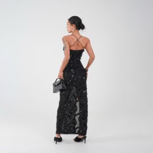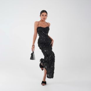 睫毛欧美辣妹轻熟风带可拆胸垫连衣裙长裙25 她 ZA038 蜜蜜家