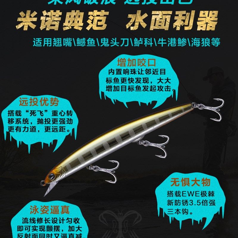 ewe暴君二代浮水米诺路亚饵远投假饵海狼鳡海鲈鱼饵专杀美夏拟饵