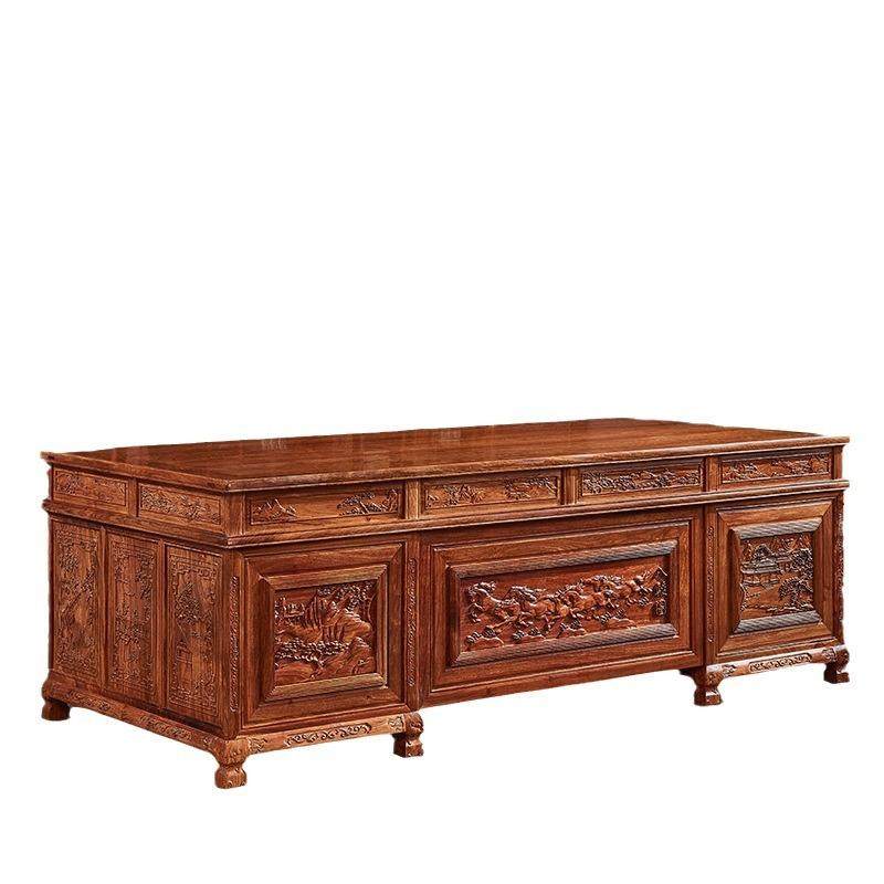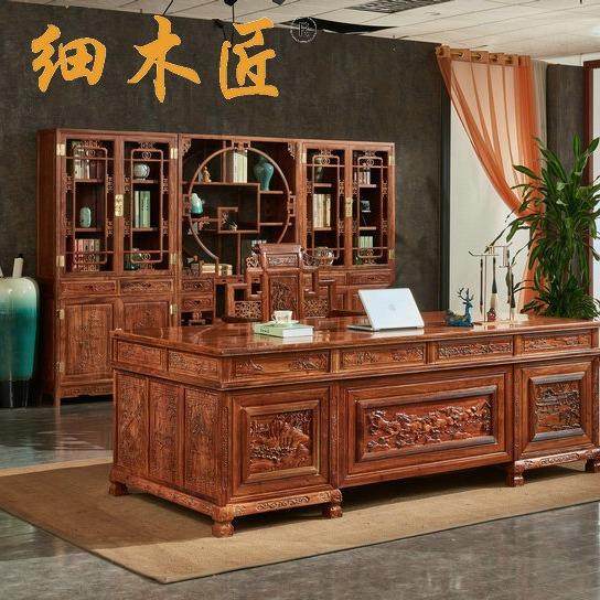 红木刺猬紫檀办公桌老板桌椅组合书桌实木办公台桌大班台书柜花梨