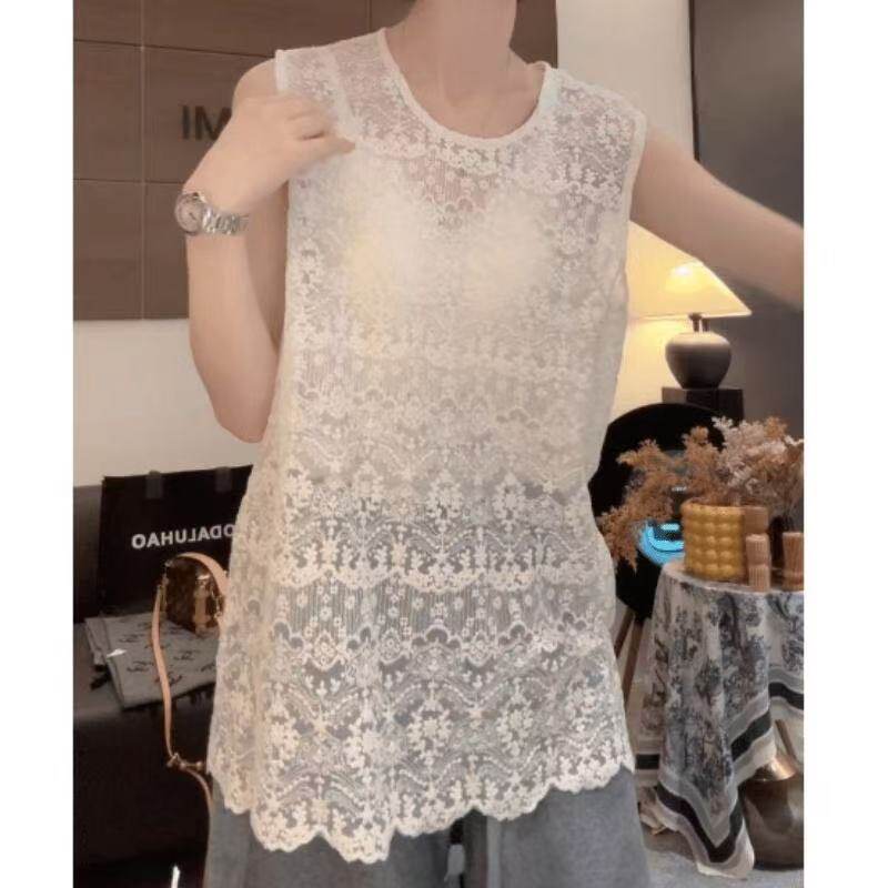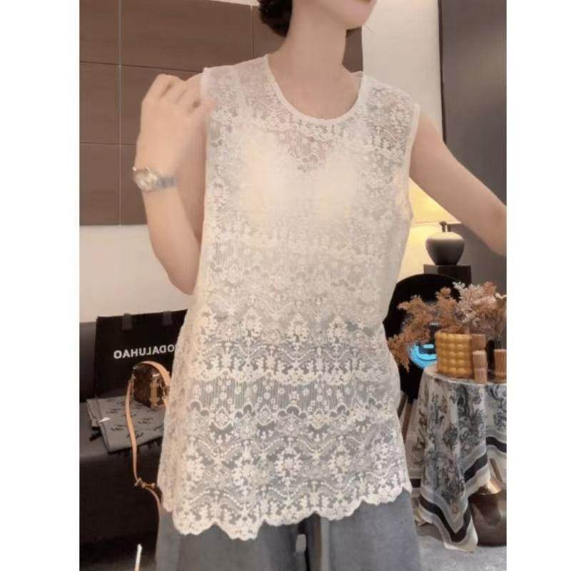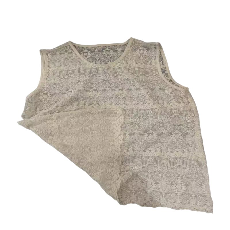 蕾丝背心女洋气小衫 百搭复古钩花镂空无袖 气质外搭上衣潮 时尚 韩版