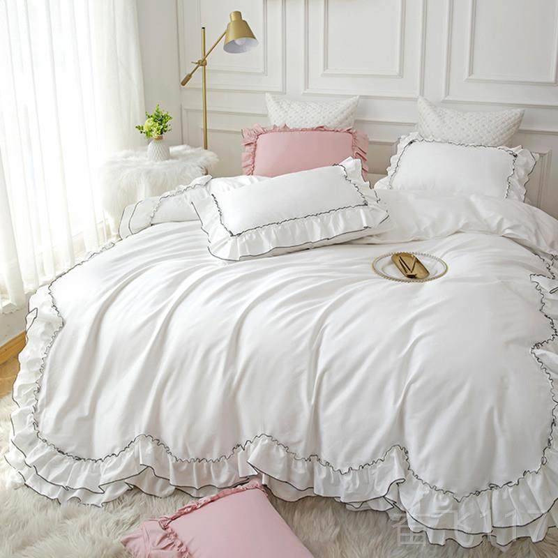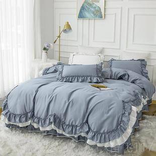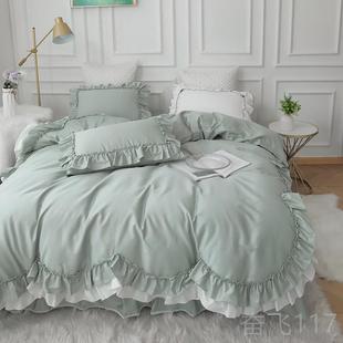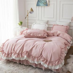 正品 ins公主100床全棉风四件套纯棉红少女心荷叶网边被套裙床上用