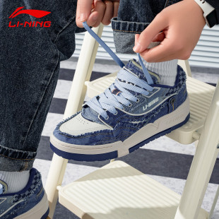 男鞋 低帮休闲运动鞋 2026冬季 复古风牛仔布系带滑板鞋 新款 李宁板鞋