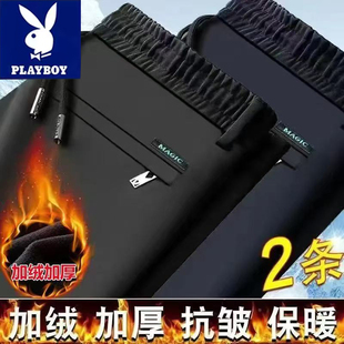 高档商务免烫保暖直筒裤 男士 百搭休闲裤 花花公子2025秋冬加绒厚款
