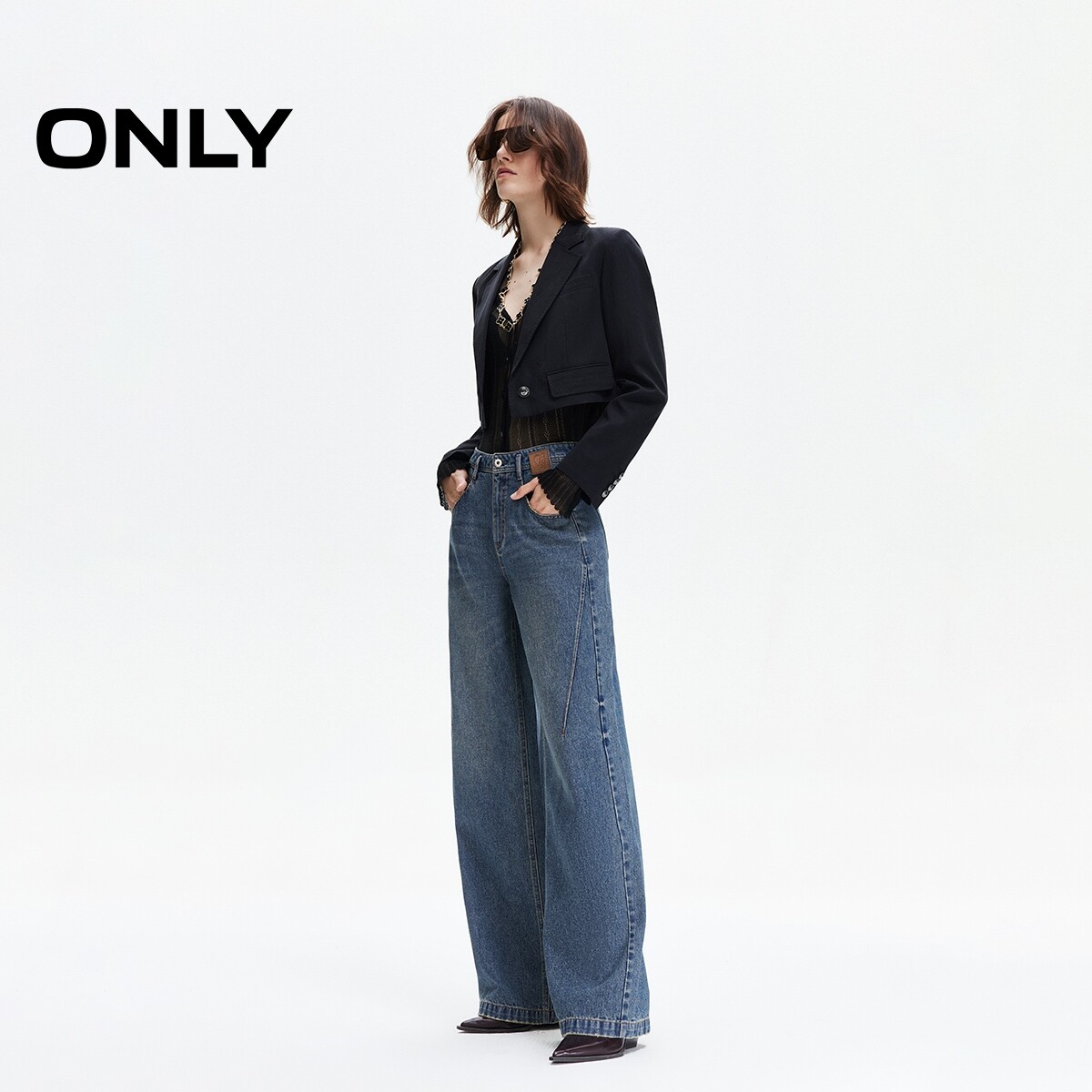 潮流松弛显瘦插袋质感皮牌宽松直筒牛仔裤 ONLY春季 天丝莱赛尔