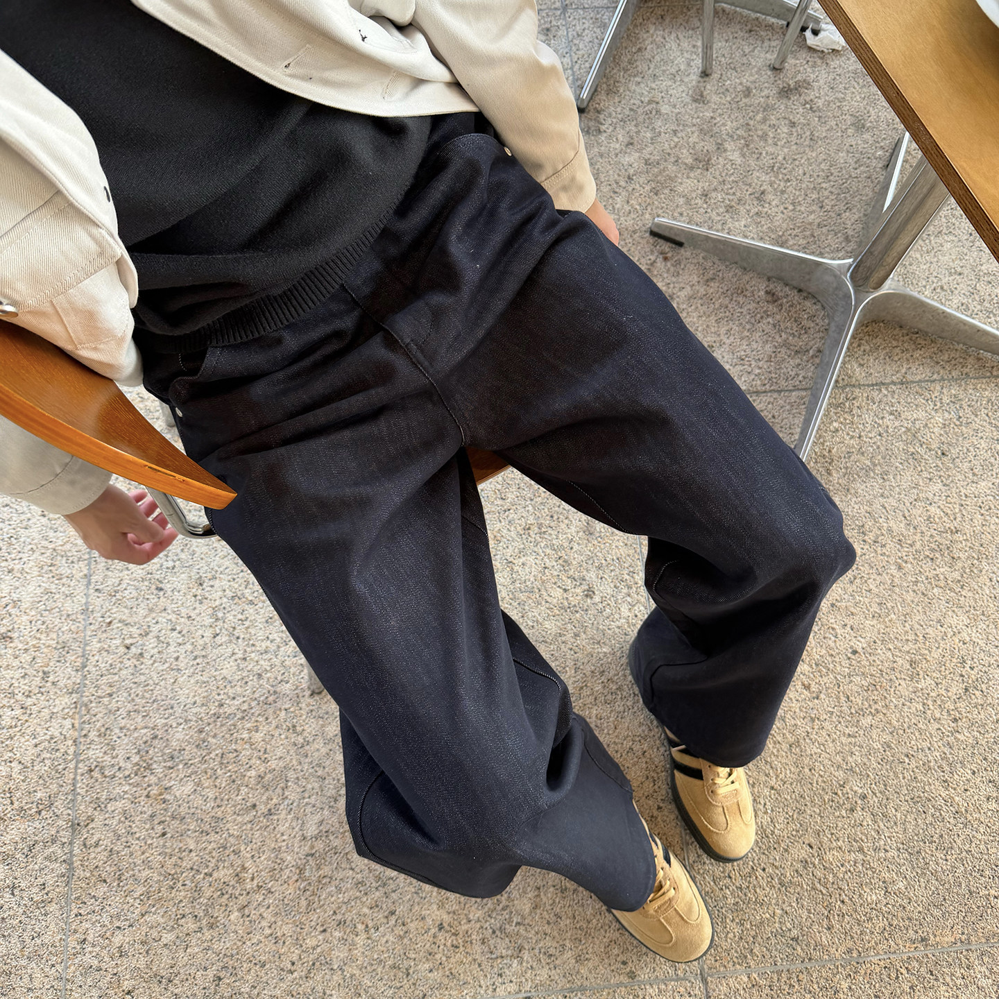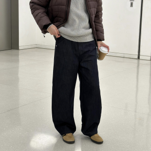 休闲宽松长裤 Nick 男秋冬款 半松紧腰复古天丝直筒牛仔裤 子 Tian