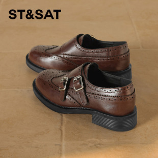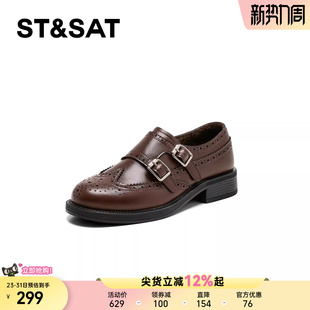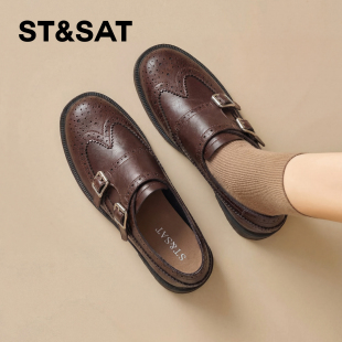 百搭复古雕花双扣圆头英伦风皮鞋 春季 女2026新款 星期六黑色乐福鞋