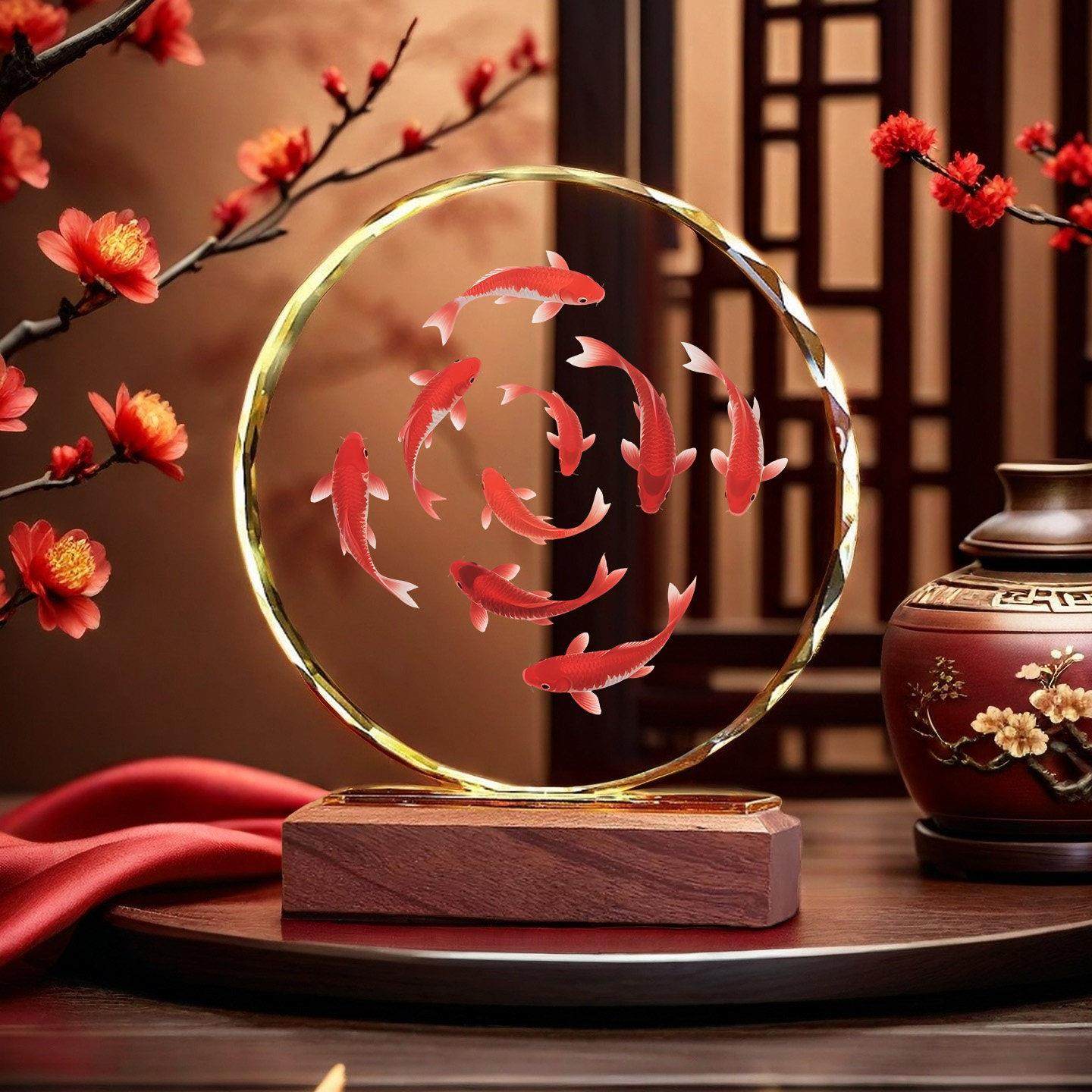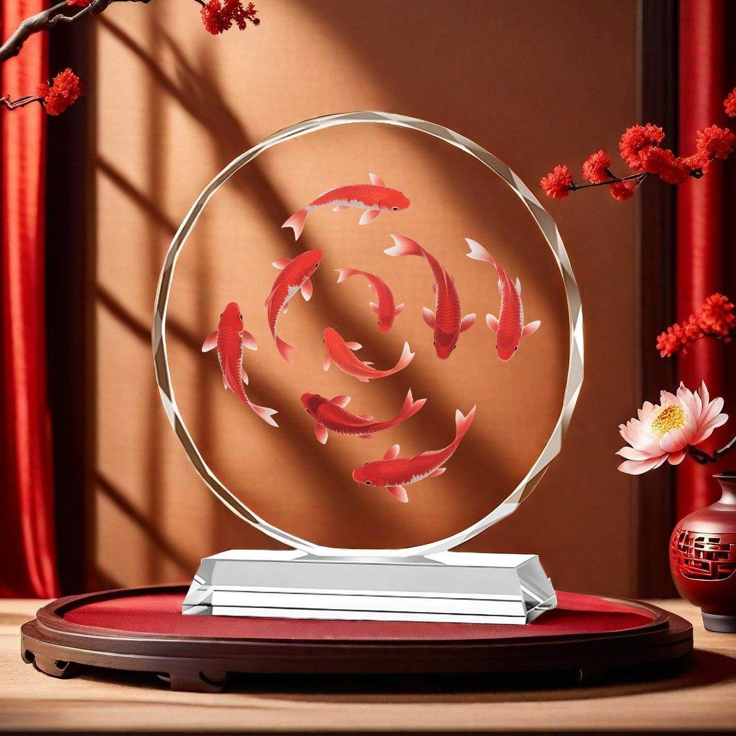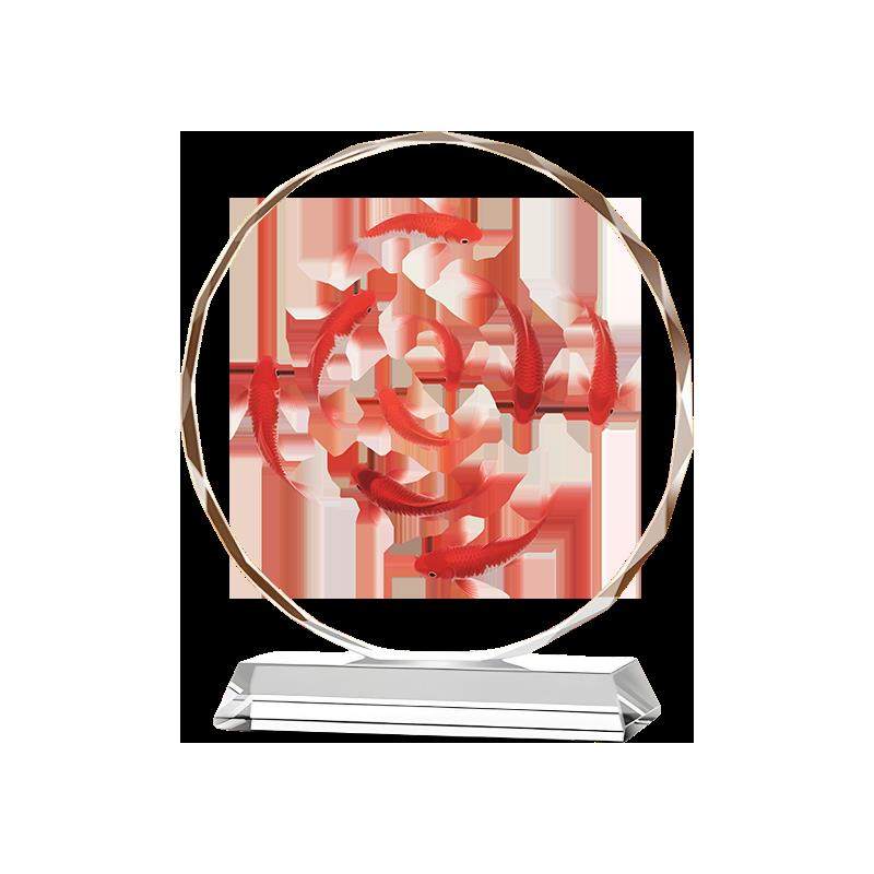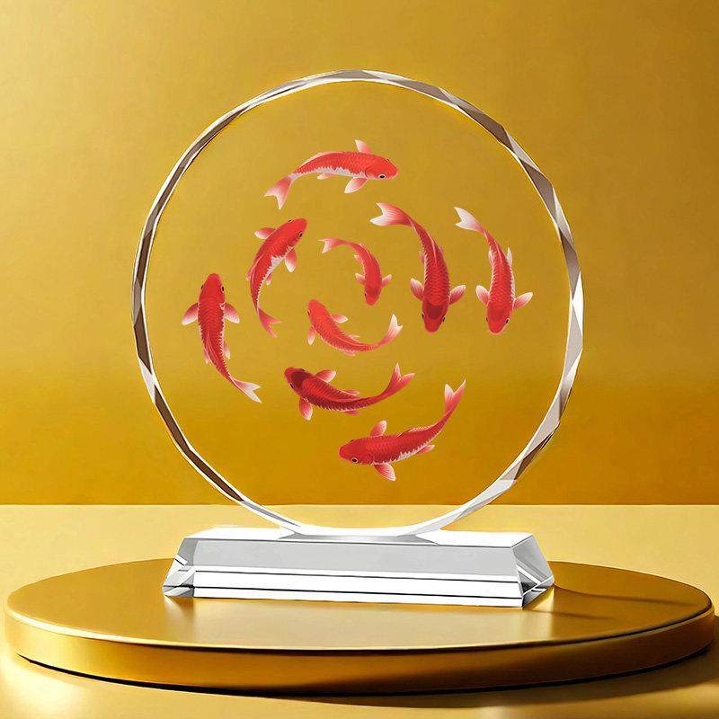 九鱼聚财水晶摆饰好运锦鲤客厅玄关家居装 饰桌面摆台乔迁开业送礼
