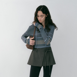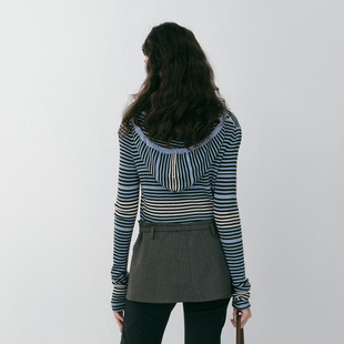 条纹连帽针织衫 运动感修身 N610113611A DIRECTION