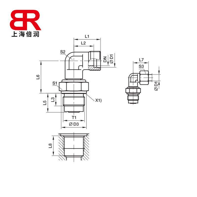 24°锥DVWE M弯通滑动轴承旋转接头 ED密封 倍润公制螺纹