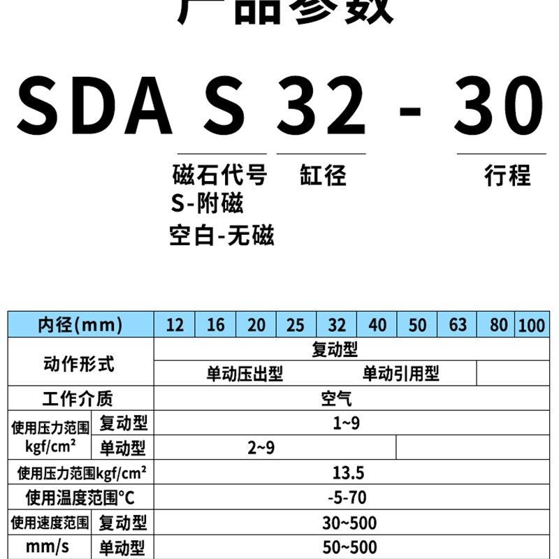 100 5X10X15X20X30X40X50X60 小型气动大推力SDA薄型气缸50